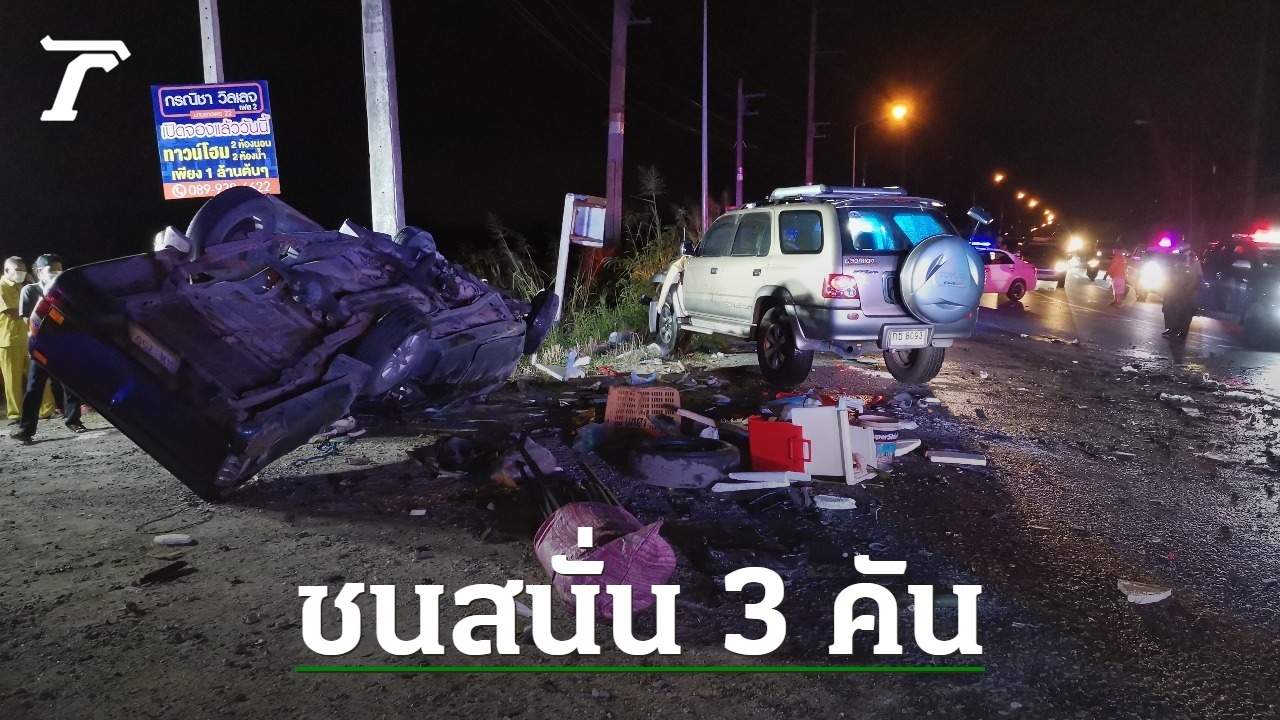 เมื่อเวลา 22.30 น. วันที่ 11 พ.ย.64 ร.ต.ท.ธนวรรษ กันทเสน รอง สว.สภ.ปลวกแดง รับแจ้งอุบัติเหตุรถยนต์ชนกัน 3 คัน มีผู้บาดเจ็บและเสียชีวิต เหตุเกิดถนนสายวังตาผิน-ซอยสุพรรณ หมู่ 4 ต.ปลวกแดง อ.ปลวกแดง จ.ระยอง จึงเดินทางไปตรวจสอบ