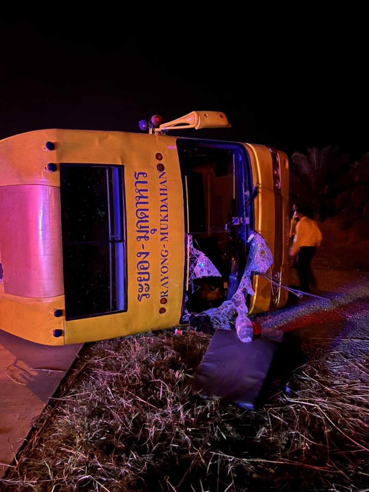 ขณะที่ นายต่อตระกูล ขอดเมชัย อายุ 33 ปี พนักงานขับรถ กล่าวว่า รับผู้โดยสารมาจากจังหวัดมุกดาหาร มุ่งหน้าจังหวัดระยอง ภายในรถมีผู้โดยสารทั้งหมด 35 คน รถออกจากมุกดาหารมาเมื่อเวลา 16.45 น.ของวันที่ 28 พ.ย. 64 ขณะที่ขับถึงบริเวณก่อนถึงสี่แยกสัญญาณไฟจราจรรถเกิดตกหลุมขนาดใหญ่ และได้เสียหลักส่ายไปมาก่อนที่จะพลิกคว่ำ ส่วนผู้โดยสารที่นั่งมาในรถได้รับบาดเจ็บเล็กน้อย และส่ง รพ.ประมาณ 30 คน ส่วนอุบัติเหตุใครไม่อยากให้เกิดแต่มันสุดวิสัย ดังกล่าว