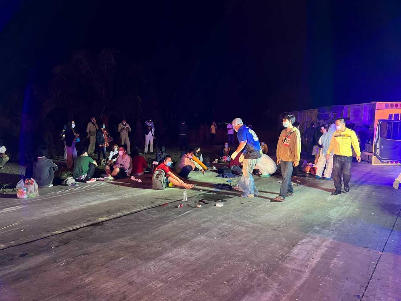 จากการสอบถามผู้โดยสารบางราย ทราบว่า รถทัวร์โดยสารสายนี้ได้ออกจากสถานีจังหวัดมุกดาหารมาตั้งแต่ ช่วง 18:00 น. ของเมื่อวานนี้ (28 พ.ย.64) จุดหมายปลายทางจังหวัดระยอง พอมาถึงที่เกิดก่อนถึงสัญญาณไฟจราจร รถเกิดเสียหลักส่ายไปมาก่อนพลิกคว่ำ และมีผู้ได้รับบาดเจ็บจำนวนมาก