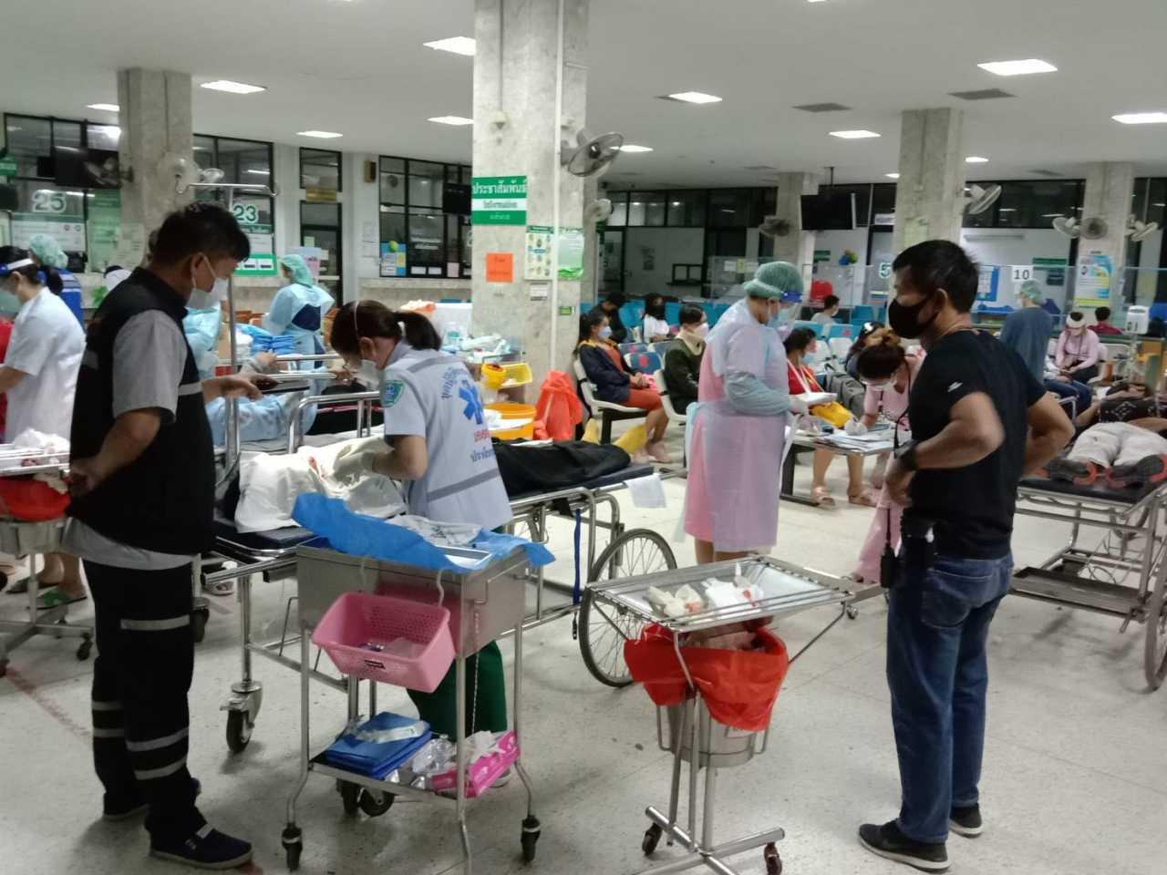 เบื้องต้นในที่เกิดเหตุบริเวณถนนสาย 359 สระแก้ว มุ่งหน้าเขาหินซ้อน ก่อนถึงแยกสัญญาณไฟจราจรวังท่าช้าง พบรถทัวร์ สีเหลือง สายระยอง-มุกดาหาร เลขข้างรถ 815-27 ทะเบียน 01-5458 ชลบุรี พลิกคว่ำบนถนนลักษณะตะแคงข้าง ตรวจสอบพบผู้โดยสารที่มากับรถทัวร์สายนี้มี จำนวน 35 ราย อาสาสมัครกู้ภัย ให้การช่วยเหลือ นำผู้ได้รับบาดเจ็บที่มีทั้งถลอกตามร่างและ หัวแตก แขนหัก และบาดเจ็บเล็กน้อย ออกมาจากในยานพาหนะ และ ได้ปฐมพยาบาลเบื้องต้นให้ในที่เกิดเหตุ ก่อนเคลื่อนย้ายผู้ได้รับบาดเจ็บ จำนวน 22 ราย ออกจากที่เกิดเหตุ นำส่ง รพ.กบินทร์บุรีเพื่อให้แพทย์ตรวจอาการอีกครั้ง ทั้งนี้ ผู้โดยสารส่วนใหญ่กลับมาจากการไปใช้สิทธิ์เลือกตั้ง อบต.ที่บ้านเกิด