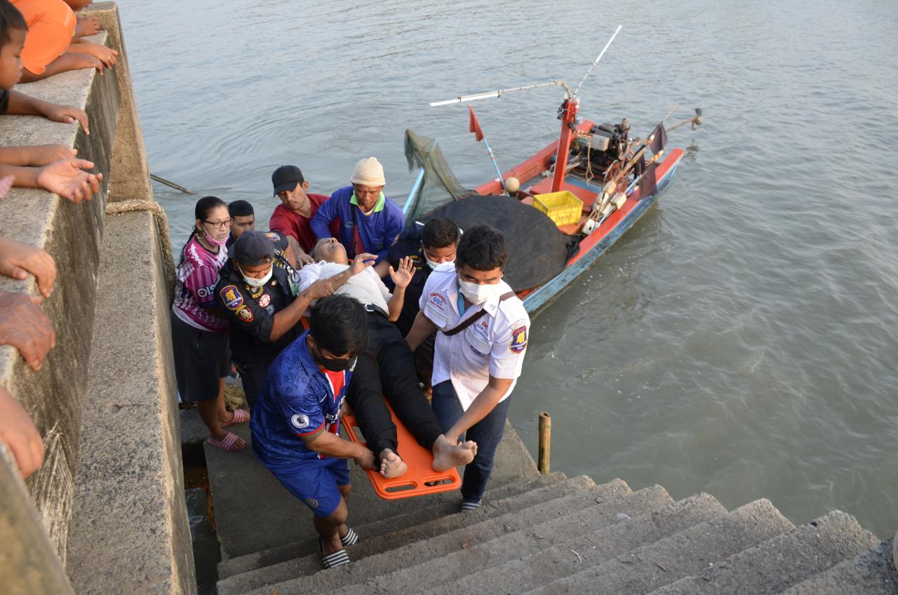 โดยใช้เวลาค้นหานานกว่า 2 ชั่วโมงกว่า จนได้รับแจ้งจากเรือประมงพื้นบ้านของชาวบ้านว่าสามารถช่วยเหลือผู้ประสบภัยได้ทั้งหมด โดยได้แจ้งพิกัดที่พบอยู่ห่างจากฝั่งหน้าหาดทรายดำ อ.แหลมงอบ ออกไปประมาณ 2 ไมค์ทะเล จากนั้นเรือตำรวจน้ำก็ได้เดินทางไปพิกัดดังกล่าวเพื่อให้การช่วยเหลือรับผู้ประสบภัยทั้งหมด แต่มี 1 ราย ที่มีอาการอ่อนเพลียมาก ชาวบ้านที่พบได้รีบนำเข้าฝั่งมาก่อน 1 คน โดยได้ลำเลียงนำเข้าฝั่งที่ท่าเทียบเรือประมงบ้านแหลมทองหลาง หมู่ 5 ต.แหลมงอบ อ.แหลมงอบ เป็นชายมีอาการอ่อนเพลียโดยเจ้าหน้าที่กู้ภัยได้ช่วยกันนำผู้ประสบภัยขึ้นจากเรือมาทำการปฐมพยาบาลก่อนจะให้รถกู้ชีพจากโรงพยาบาลแหลมงอบ นำตัวไปรักษาต่อที่โรงพยาบาล ส่วนผู้ประสบภัยอีก 6 ราย ทราบว่าเรือตำรวจน้ำกำลังนำมาขึ้นฝั่งที่ท่าเทียบเรือสะพานแหลมงอบ