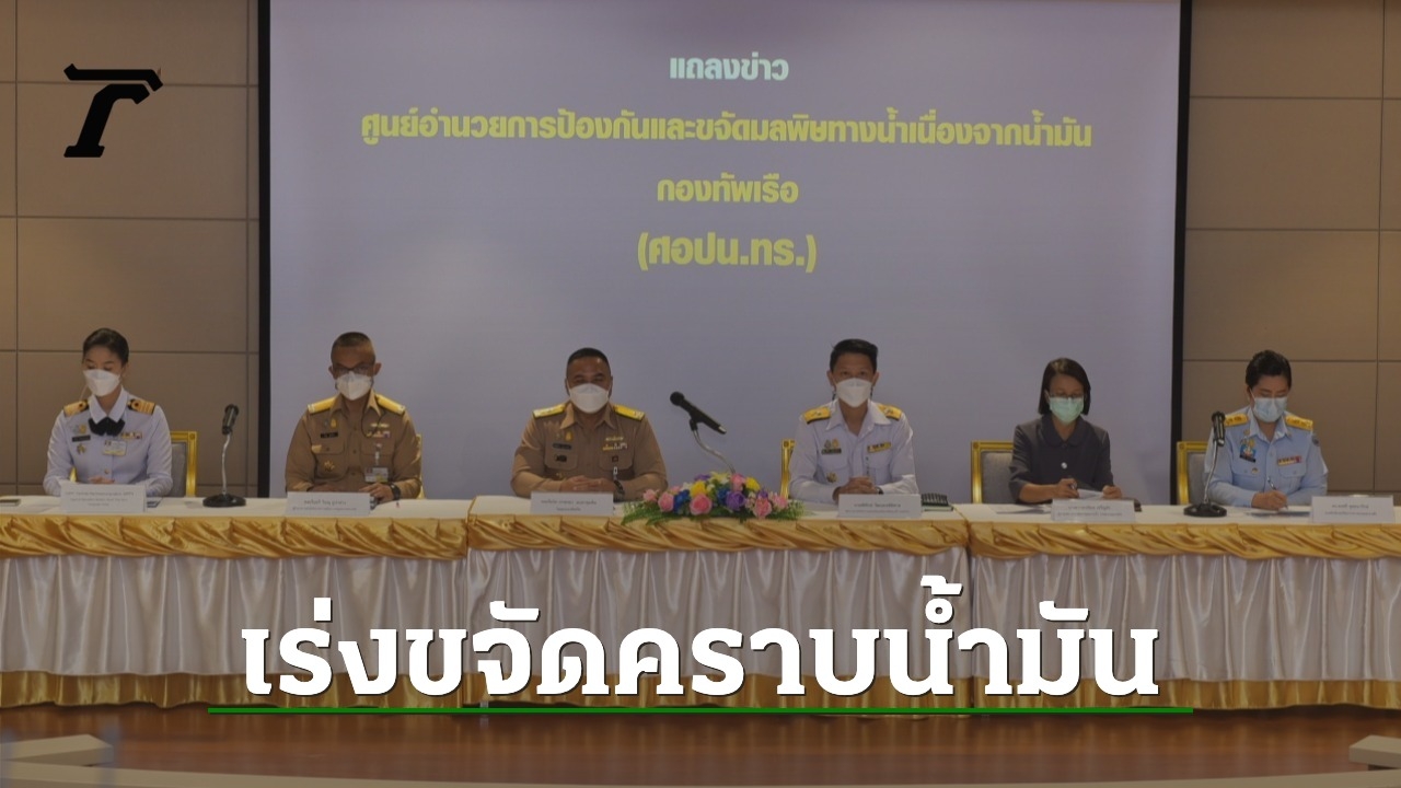 เมื่อเวลา 10.00 น. วันที่ 27 ม.ค. 65 ที่ห้องโพธิ์สามต้น หอประชุมกองทัพเรือ พล.ร.ท.ปกครอง มนธาตุผลิน โฆษกกองทัพเรือ เปิดแถลงข่าวการจัดตั้ง ศูนย์อำนวยการป้องกันและขจัดมลพิษทางน้ำเนื่องจากน้ำมัน กองทัพเรือ (ศอปน.ทร.) เพื่อเร่งขจัดคราบน้ำมันที่รั่วไหลในทะเลระยอง โดยมีผู้ร่วมแถลงข่าวประกอบด้วย นางสาวพรพิมล เจริญส่ง ผู้อำนวยการกองจัดการคุณภาพน้ำ กรมควบคุมมลพิษ นายพิทักษ์ วัฒนพงศ์พิศาล ผู้อำนวยการสำนักความปลอดภัยและสิ่งแวดล้อมทางน้ำ กรมเจ้าท่า และ ดร.พรศรี สุทธนารักษ์ รองอธิบดีกรมทรัพยากรทางทะเลและชายฝั่ง