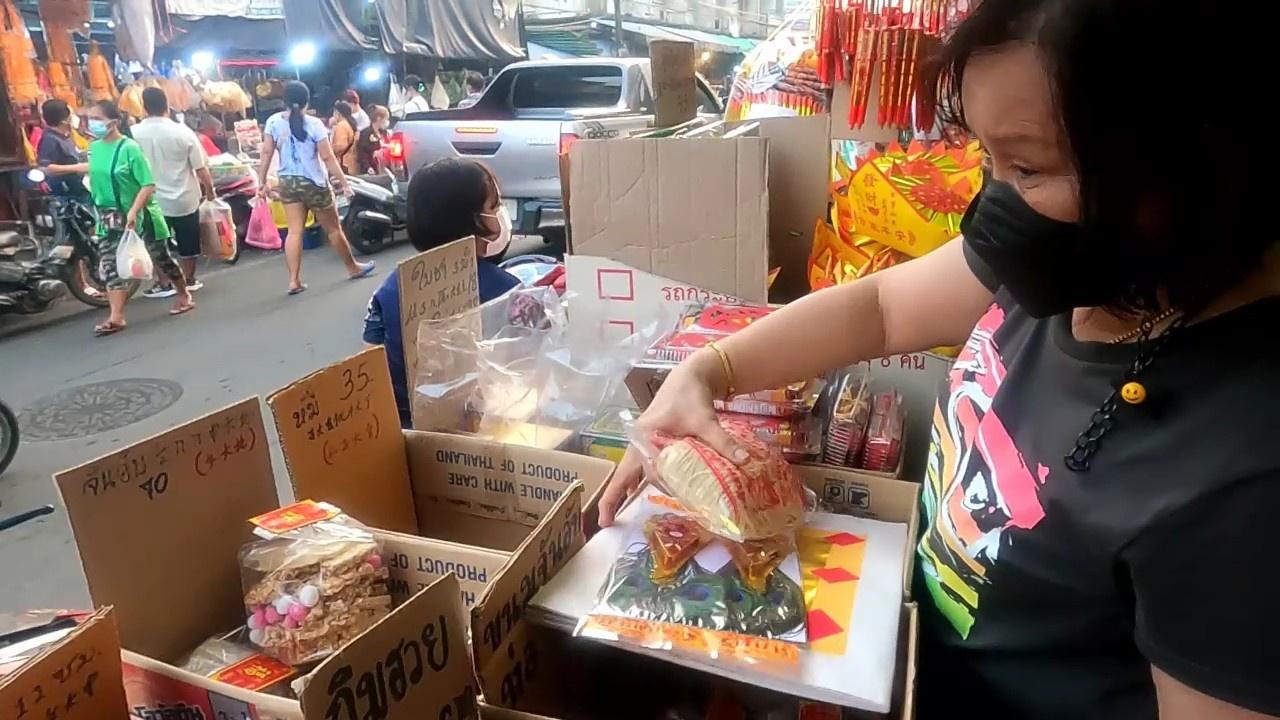 ด้าน นายชัยวิทย์ เทพพิพัฒน์ หนุ่มเจ้าของร้าน “หัวหมูต้ม ยิ่งไหว้ยิ่งรวย” เผยว่าตนเองมีอาชีพขายหัวหมูต้มทุกวัน แต่วันนี้ต้องมีไก่ต้มมาเสริม เพราะตนเองขายไก่ต้มตัวใหญ่ๆ แค่ 180 บาทเท่านั้น ส่วนตรุษจีนปีนี้ ถึงแม้จะมีชาวบ้านเดินทางมาจับจ่ายซื้อหาของไหว้เป็นจำนวนมาก จนดูคึกคัก แต่ส่วนใหญ่ก็จะเลือกซื้อเป็นผลไม้มากกว่า เพราะของไหว้ที่เป็น หมู ไก่ ปลา กุ้ง หรืออื่นๆ ที่มีราคาสูงขึ้น ชาวบ้านก็จะเลือกซื้อน้อยลง ในขณะที่ชาวบ้านบางส่วนก็ยังให้ความสนใจของไหว้อื่นๆ แบบบางตา แม้แต่ร้านเสื้อผ้าที่ทุกปีมียอดขายดี แต่ปีนี้เสื้อแดง กลับไม่คึกคักเท่าที่ควร.