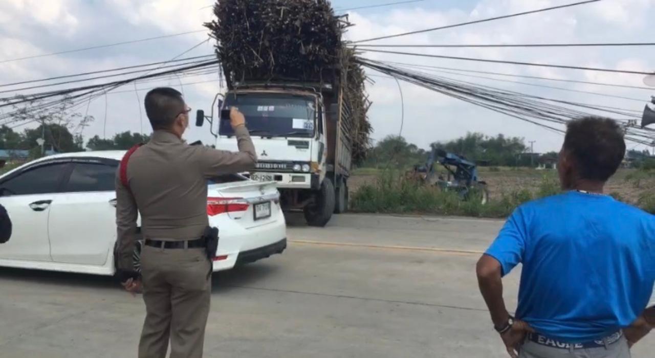 เมื่อมาถึงที่เกิดเหตุ พบรถบรรทุก 10 ล้อ ยี่ห้อมิตซูบิชิ สีขาว หมายเลขทะเบียน 82-1288 ชลบุรี บริเวณกระบะบรรทุกมีอ้อยเต็มคันรถ จอดอยู่ทางขึ้นจากไร่อ้อย และบริเวณข้างถนนพบเสาไฟฟ้าล้มขวางถนน จำนวน 6 ต้น เสาไฟโซลาร์เซลล์ จำนวน 5 ต้น รวม 11 ต้น ล้มขวางถนน 1 เลน มูลค่าความเสียหายหลายแสนบาท หลังเข้าตรวจสอบจึงรีบแจ้งเจ้าหน้าที่การไฟฟ้าให้รีบมาตัดไฟ เกรงว่าจะเกิดอันตรายได้