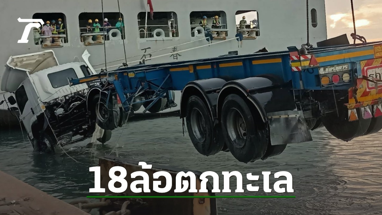 โชเฟอร์หนุ่มขับรถบรรทุก 18 ล้อส่งตู้คอนเทนเนอร์ลงเรือบรรทุกสินค้าที่ท่าเรือแหลมฉบัง เกิดเสียหลักพุ่งตกลงทะเล คนขับติดในรถออกไม่ได้ จมน้ำตาย