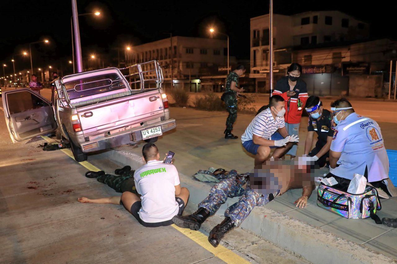 ทหารบกมาร่วมซ้อมคอบร้าโกลด์ กระบะเสียหลักพุ่งชนไฟส่องสว่างบนเกาะกลางถนนสายพัทยา-สัตหีบ ทำให้บาดเจ็บ 3 ราย นำส่ง รพ.แล้ว คนขับเสียใจลูกน้องเจ็บ เผย เกิดหลับในทั้งที่อีก 10 กม.จะถึงที่พัก