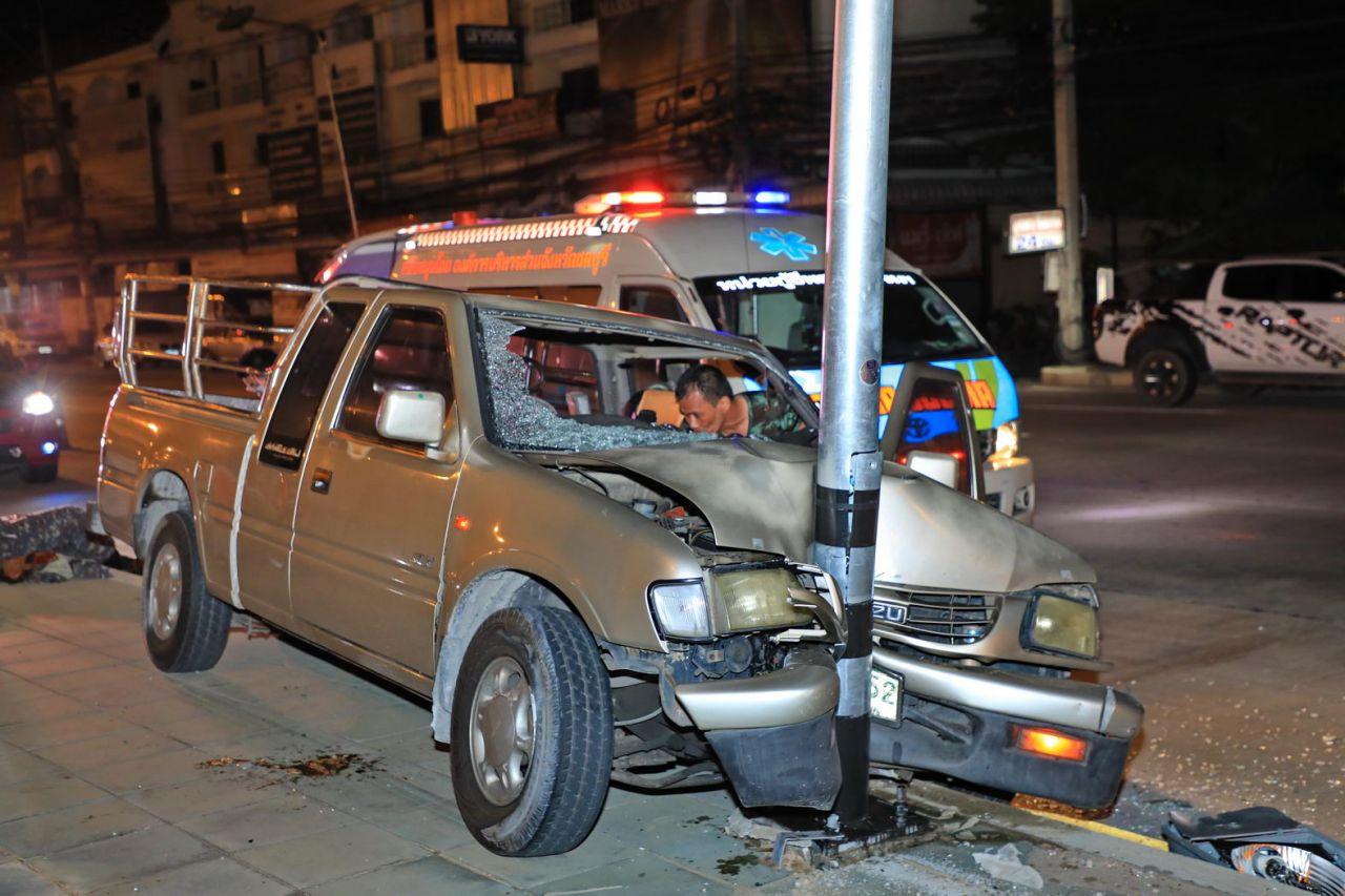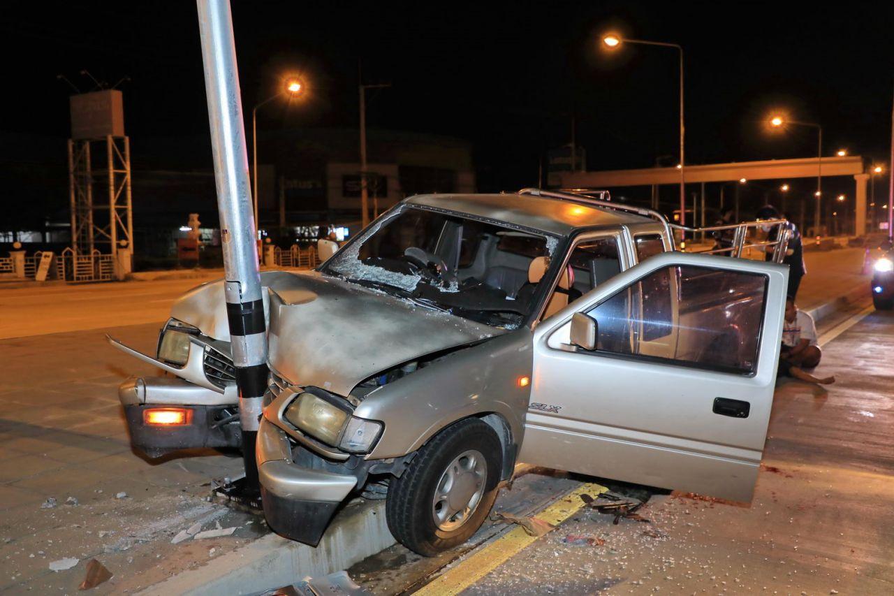 เมื่อเวลา 01.00 น.วันที่ 25 ก.พ.65 หน่วยกู้ภัยสว่างโรจนธรรมสถานสัตหีบ รับแจ้งเหตุรถกระบะพุ่งชนเสาไฟส่องสว่างบนเกาะกลางถนน มีผู้ได้รับบาดเจ็บหลายราย เหตุเกิดบนถนนสุขุมวิท เส้นทางพัทยา-สัตหีบ บริเวณหน้าห้างเทสโก้โลตัสสัตหีบ ต.สัตหีบ อ.สัตหีบ จ.ชลบุรี จึงส่งเจ้าหน้าที่ พร้อมรถกู้ชีพ รุดให้การช่วยเหลือ