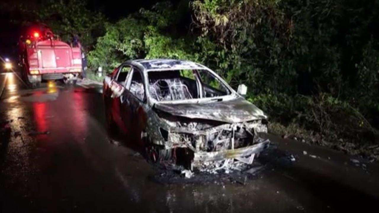 ที่เกิดเหตุพบเพลิงกำลังลุกไหม้ตัวรถอย่างหนัก โดยมีเจ้าของรถยืนมองตัวสั่นอยู่ห่างๆ โชคดีไม่ได้รับบาดเจ็บ ทราบชื่อต่อมาคือ นายอนุรักษ์ ประจักษานนท์ อายุ 48 ปี อยู่บ้านเลขที่ 9/4 หมู่ 4 ต.หนองเสม็ด อ.เมือง จ.ตราด เจ้าหน้าที่เร่งฉีดน้ำดับเพลิงจนสงบ โดยใช้เวลาประมาณ 5 นาที จากการตรวจสอบพบเป็นรถเก๋ง ยี่ห้อโตโยต้า อัลติส สีขาว ปี 2012 หมายเลขทะเบียน กง 5587 ตราด สภาพถูกเพลิงไหม้เสียหายทั้งคัน