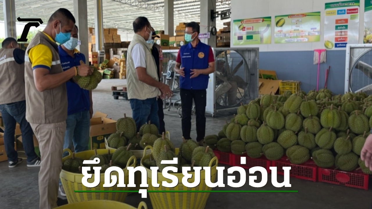 ชุดเฉพาะกิจปราบปรามทุเรียนอ่อน จ.จันทบุรี จับทุเรียนอ่อน คาล้งผลไม้ริมถนนสุขุมวิท อ.ท่าใหม่ หลังสุ่มตรวจพบผลอ่อนเปอร์เซ็นต์น้ำหนักแห้งต่ำกว่าเกณฑ์มาตรฐาน ค่ากว่า 1 ล้าน เตรียมส่งไปจีนทางเครื่องบิน
