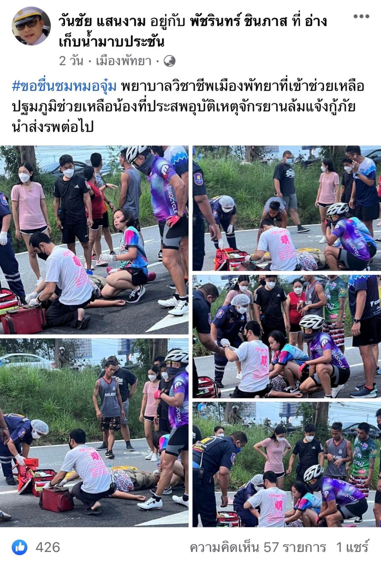 จากกรณีโพสต์เฟซบุ๊กของนาย วันชัย แสนงาม รองนายกเทศบาลเมืองหนองปรือ ได้โพสต์ #ขอชื่นชมหมอจุ๋ม พยาบาลวิชาชีพเมืองพัทยาที่เข้าช่วยเหลือ ปฐมภูมิช่วยเหลือน้องที่ประสบอุบัติเหตุจักรยานล้มแจ้งกู้ภัยนำส่งรพ.ต่อไป ซึ่งหลังจากมีการโพสต์ไปต่างมีคนแห่ชื่นชมพยาบาล รพ.เมืองพัทยา ที่ได้เข้าช่วยเหลืออุบัติเหตุดังกล่าวจนผู้บาดเจ็บปลอดภัย