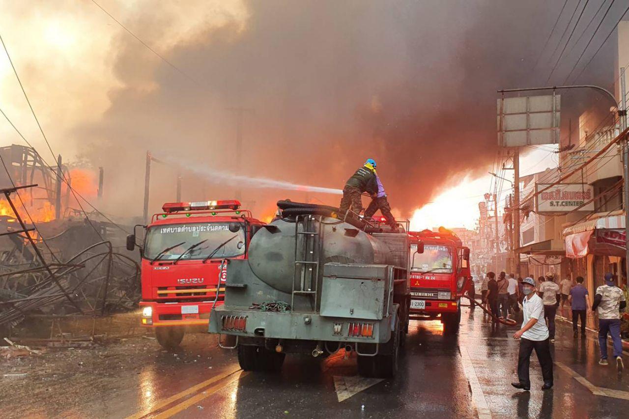 ความคืบหน้าไฟไหม้ใหญ่กลางเมืองปราจีนบุรี โดยเป็นตลาดเก่าแก่อาคารไม้ 2 ชั้น วอดรวม 30 หลังคาเรือน ค่าเสียหายรวมกว่าร้อยล้านบาท เทศบาลก็ตั้งศูนย์บรรเทาสาธารณภัยฉุกเฉินรับแจ้งผู้ประสบภัย