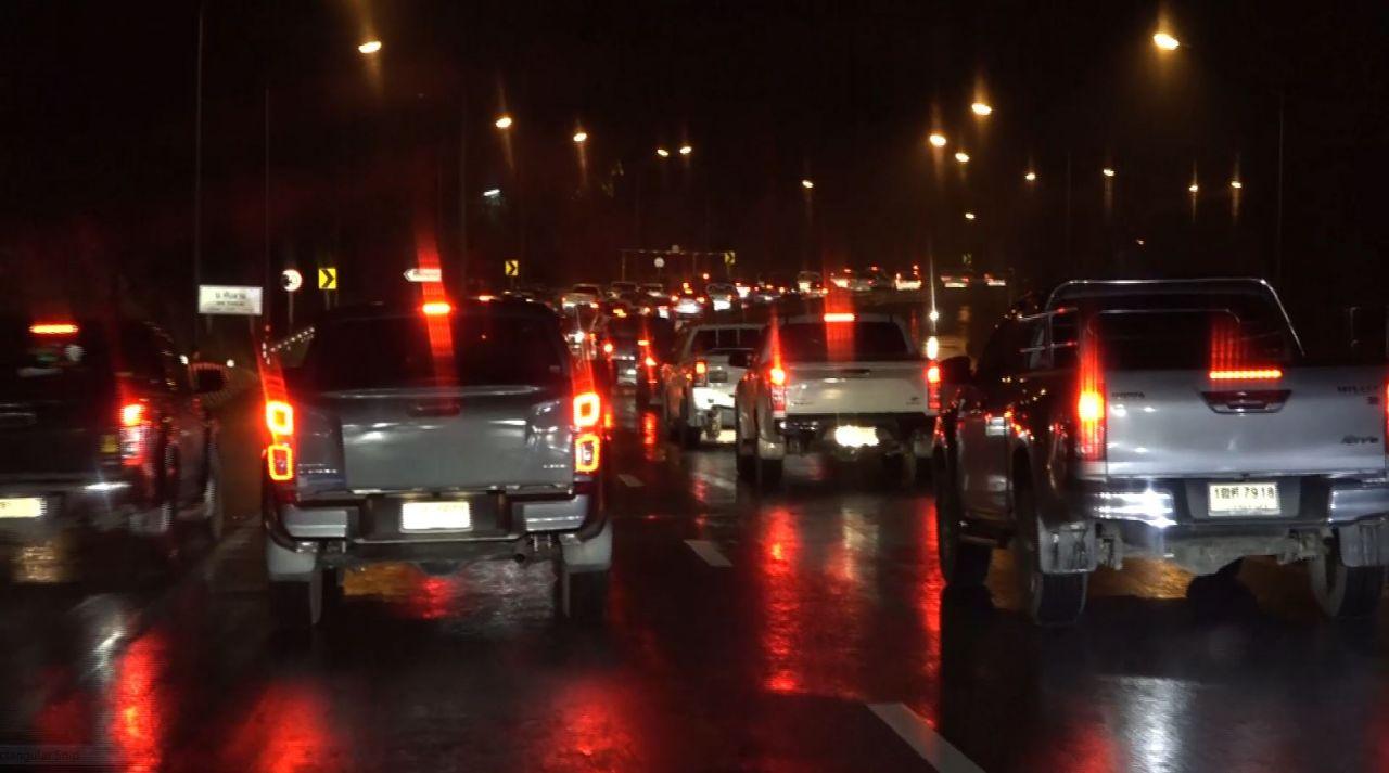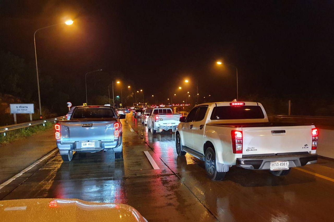 ต่อมาในช่วงค่ำเป็นต้นมา ที่บริเวณอุโมงค์เชื่อมผืนป่า เริ่มมีปริมาณรถเป็นจำนวนมาก ทำให้รถต้องชะลอความเร็วสลับกับหยุดนิ่งเป็นช่วงๆ ตั้งแต่โค้งแม่จำปีลงไป รถสามารถใช้ความเร็วได้เพียง 10-20 กม./ชม. ส่งผลให้มีรถติดสะสมเป็นระยะทางยาวประมาณ 10 กม. ไปจนถึงหน้าเขตนิคมอุตสาหกรรมกบินทร์บุรี