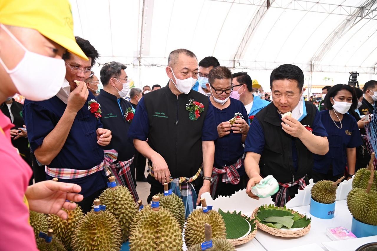 เมื่อวันที่ 15 พ.ค.65 นายเฉลิมชัย ศรีอ่อน รมว.เกษตรและสหกรณ์ เป็นประธานเปิดงานเทศกาลผลไม้และของดี อ.แกลง ประจำปี 2565 ปีที่ 40 ที่จัดขึ้นระหว่างวันที่ 13 – 17 พ.ค.65 โดยมี นายสาธิต ปิตุเตชะรมช.สาธารณสุข นายธารา ปิตุเตชะ นายบัญญัติ เจตนจันทร์ ส.ส.ระยอง และผู้บริหารกระทรวงเกษตรฯ เข้าร่วม ณ สถานีบริการน้ำมันบางจาก (ไต๋ ปิโตรเลียม) พร้อมมอบประกาศนียบัตรให้แก่ผู้ชนะการประกวดผลไม้ และผู้สนับสนุนการจัดงาน ทั้งมอบป้ายมาตรการด้านความปลอดภัยจากเชื้อไวรัสโคโรนา 2019 ในผลไม้เพื่อการส่งออกของ จ.ระยอง (Zero COVID Rayong Fruit : ZCRF) เยี่ยมชมการจำหน่ายผลไม้ ชิมทุเรียนหลากสายพันธุ์จากสวนบ้านเรา หมู่ที่ 8 ต.กระแสบน อ.แกลง จ.ระยอง และร่วมกิจกรรมทอดทุเรียนกระทะยักษ์ โดยการจัดงานดังกล่าวมีวัตถุประสงค์เพื่อเผยแพร่ชื่อเสียงแหล่งผลิตผลไม้ที่ดี มีคุณภาพ เพิ่มศักยภาพในด้านการจำหน่ายผลไม้ของเกษตรกร สร้างขวัญและกำลังใจแก่เกษตรกรที่ผลิตผลไม้เป็นอาชีพหลัก ถือเป็นการส่งเสริมการท่องเที่ยวให้กับ อ.แกลง อีกทางหนึ่ง
