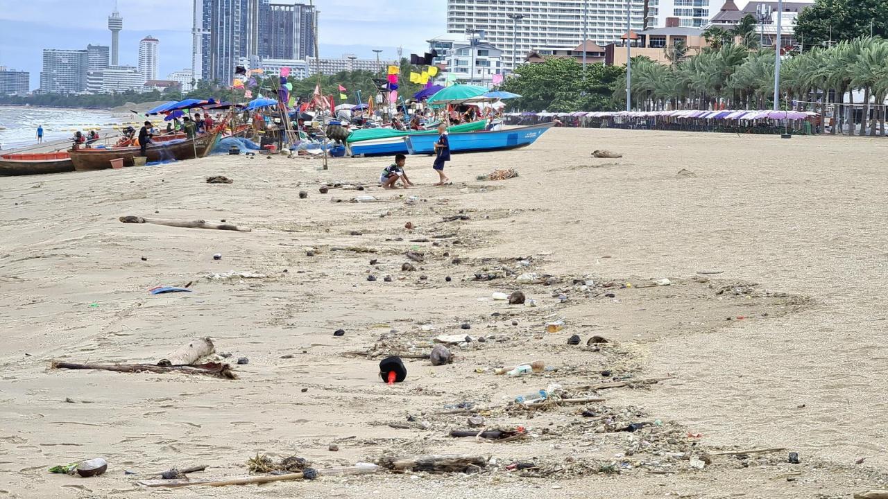 เมื่อวันที่ 21 พ.ค. 65 ผู้สื่อข่าวรายงานว่า ขณะนี้ในพื้นที่ อ.สัตหีบ จ.ชลบุรี ได้มีมรสุมปกคลุม คลื่นลมทะเลพัดโหมเข้าชายฝั่ง ส่งผลให้แนวชายหาดต่างๆ โดยเฉพาะบริเวณหน้าชายหาดนาจอมเทียน ม.1 ต.นาจอมเทียน เต็มไปด้วยขยะและสิ่งปฏิกูลจำนวนมาก ทำลายทัศนียภาพความสวยงาม