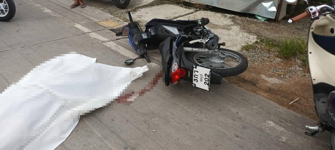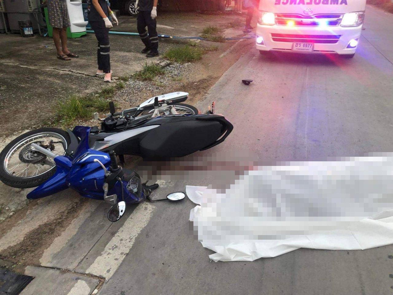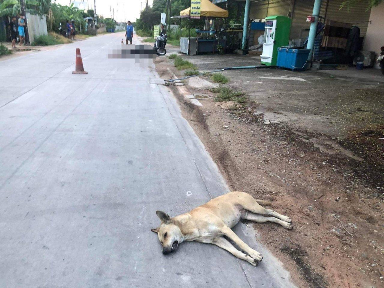 หนุ่มเมืองชลวัย 16 ปี ขี่ จยย.ส่งแม่ไปทำงาน ขากลับถูกหมาวิ่งตัดหน้าพุ่งชนกระเด็นดับคาที่ทั้งคู่ริมถนนที่ศรีราชา พี่ชายโทรหาแม่บอกน้องยังไม่กลับบ้าน แม่จึงขอยืมรถเพื่อนขี่ตามหาจึงพบว่าลูกตายแล้ว