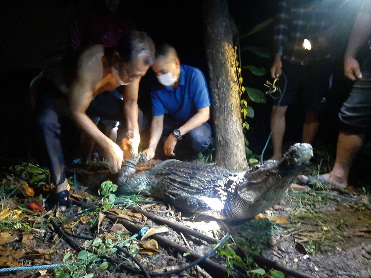 นายสุทธิวุฒิ แก่นทอง รักษาการประมง จ.ฉะเชิงเทรา เผย หลังได้รับแจ้งจากชาวบ้านพบจระเข้ใกล้เขื่อนทดน้ำบางประกง ทางสำนักงานประมงจังหวัดจึงได้ประชุมเพื่อเตรียมความพร้อมในการจับจระเข้ ซึ่งเจ้าหน้าที่ได้ลงมาสำรวจพบจระเข้ลอยให้เห็นหัวอยู่ในแม่น้ำบางปะกง โดยได้เฝ้าติดตามตั้งแต่ช่วง 5 โมงเย็น จนมาพบจระเข้ในช่วงสี่ทุ่มกว่าจึงสามารถจับตัวไว้ได้