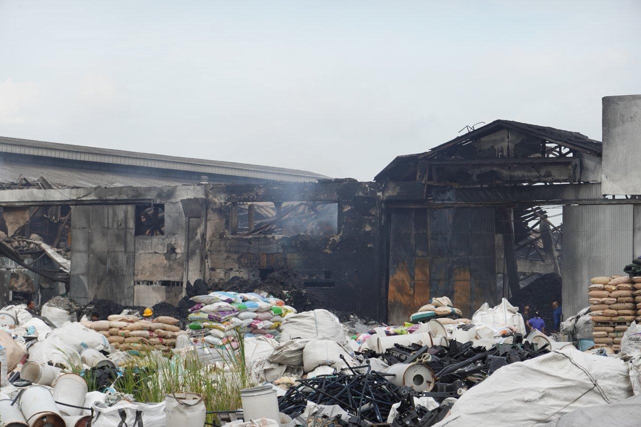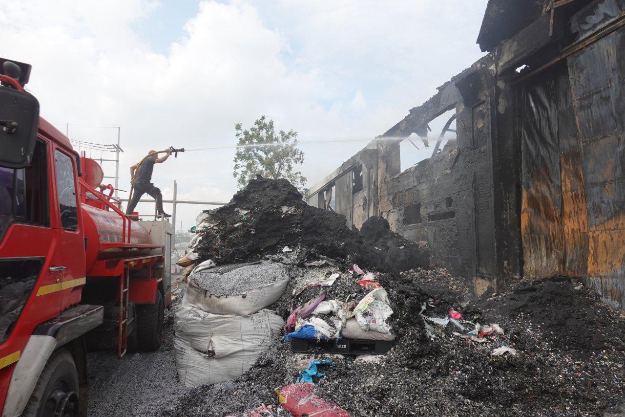 นายพลวัฒน์ กล่าวว่า ต้องประสานรถแบ็กโฮมาคุ้ยกองเม็ดพลาสติก ที่ยังมีกลุ่มควันคุกรุ่นอยู่ และยังตรึงกำลังรถดับเพลิงจำนวน 2 คันจอดฉีดน้ำเพื่อไม่ให้ไฟกลับมาลุกอีกครั้ง