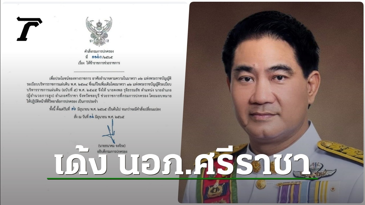 อธิบดีกรมการปกครอง เซ็นคำสั่งย้าย ดงพล รุจิธรรมธัช นายอำเภอศรีราชา ไปช่วยราชการที่กรมการปกครองตั้งแต่ 16 มิ.ย. คาดปมเหตุมาจากมีชื่อพัวพันกลุ่มเครือข่ายค้าปืน "เบล 1,000 กระบอก" ที่ถูกจับ
