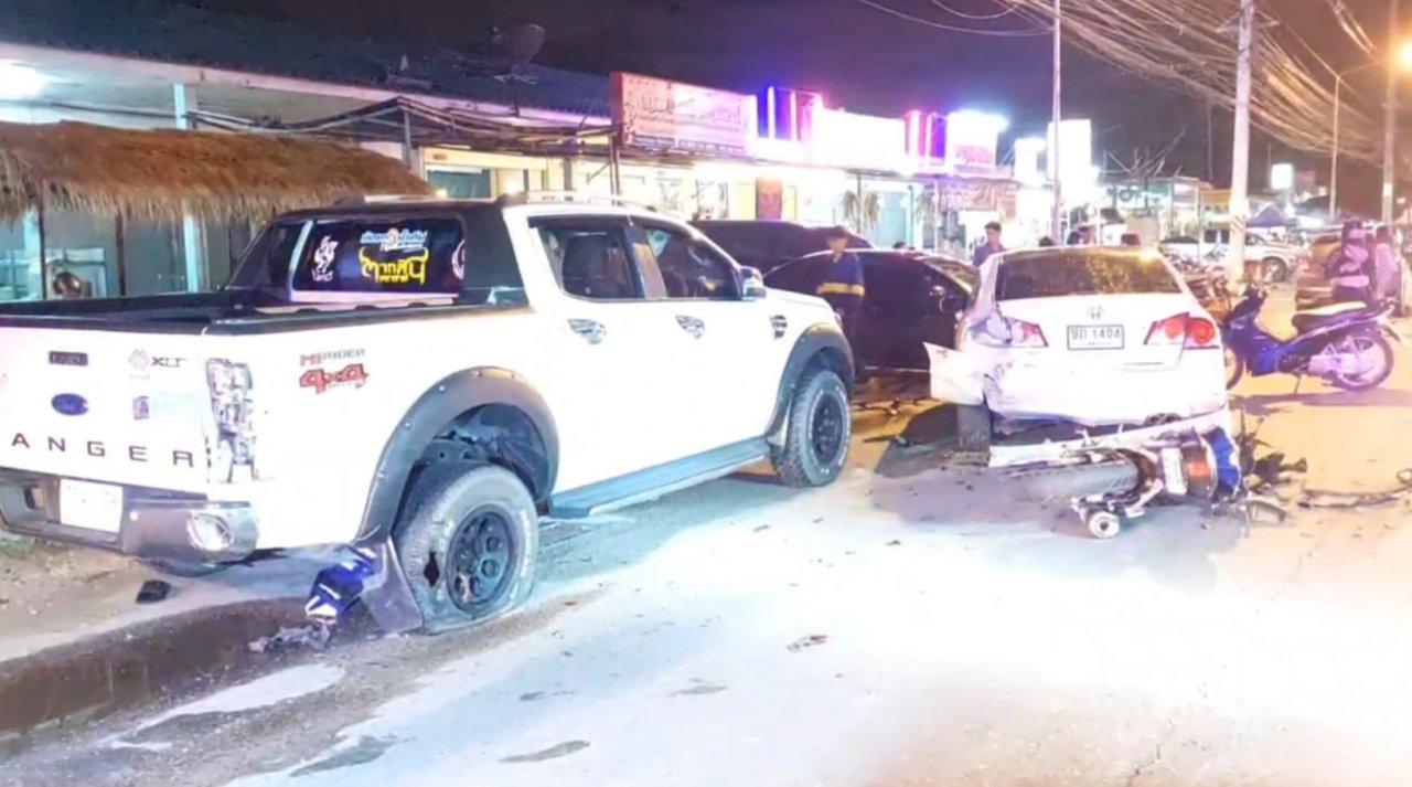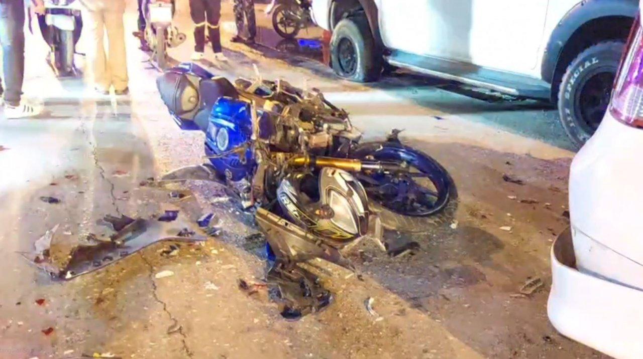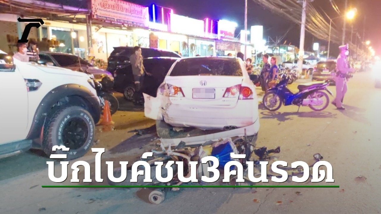 หนุ่มขี่บิ๊กไบค์มาเร็วชนท้ายกระบะ และรถเก๋งรวม 3 คันริมถนนสัตตพงษ์ - ดอนหัวฬ่อ ที่ อ.พานทอง บาดเจ็บสาหัสซี่โครงหักกับแขนหัก กู้ภัยเร่งนำส่งโรงพยาบาล ตร.จะดูวงจรปิดหาสาเหตุเพื่อดำเนินการต่อไป