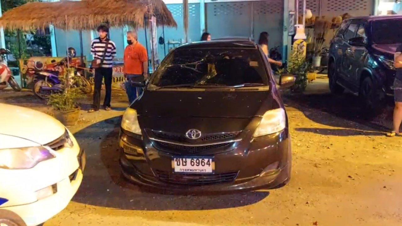 ที่เกิดเหตุพบรถจักรยานยนต์แบบบิ๊กไบค์ ยี่ห้อยามาฮ่า สีน้ำเงิน ทะเบียน 9 กล 1136 กทม.ของผู้บาดเจ็บสภาพด้านหน้าพังยับ นอกจากนี้ยังมีรถกระบะฟอร์ด เรนเจอร์ สีขาว ทะเบียน 7 กน 4379 กทม.ที่จอดข้างทาง ไฟท้ายข้างขวาแตกยางล้อหลังขวาแตก รถเก๋งฮอนด้า ซีวิค สีขาว ทะเบียน ชถ 1404 กทม. จอดอยู่ข้างทางเหมือนกันสภาพด้านหลังฝั่งซ้ายพัง และรถเก๋งโตโยต้า วีออส สีดำ ทะเบียน ชษ 6964 กทม.ที่กระจกบังลมหน้าแตก
