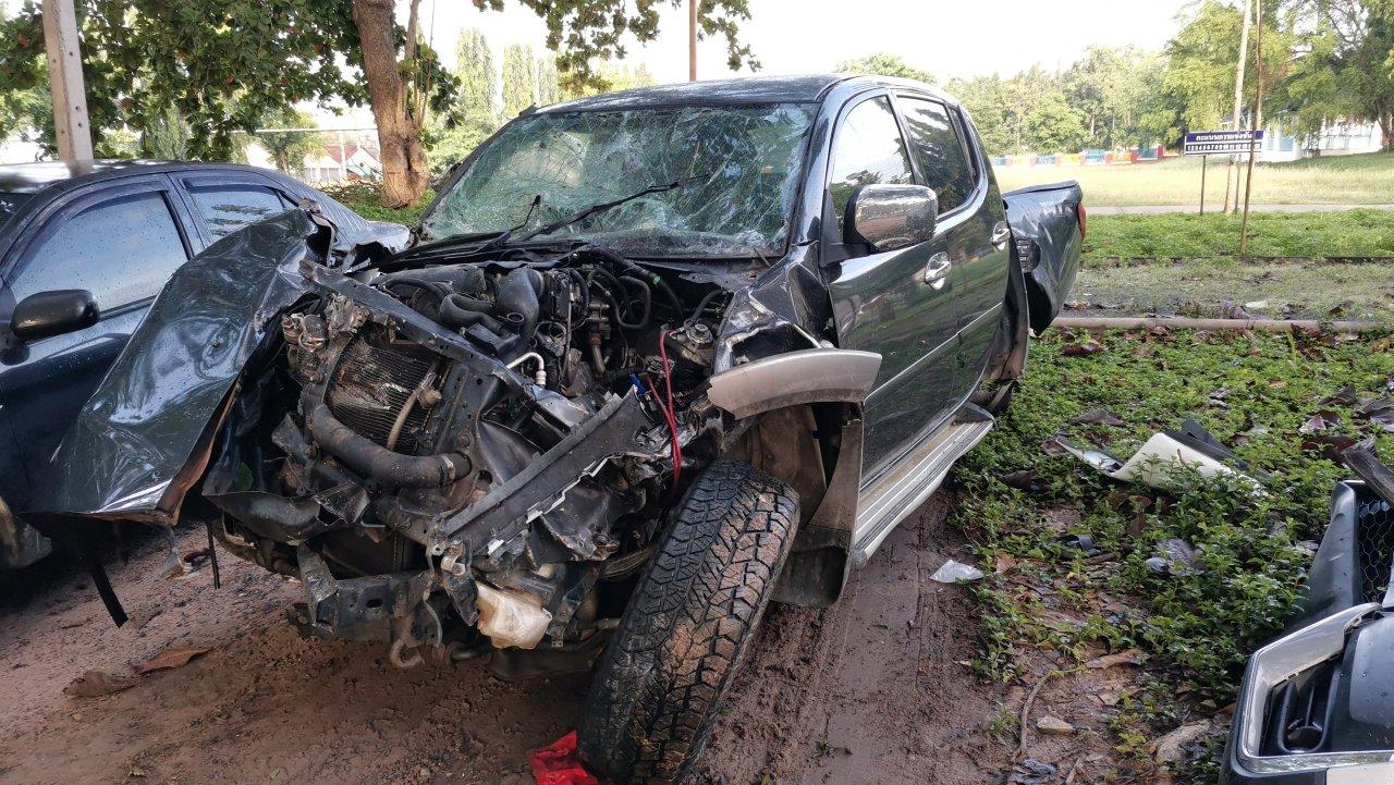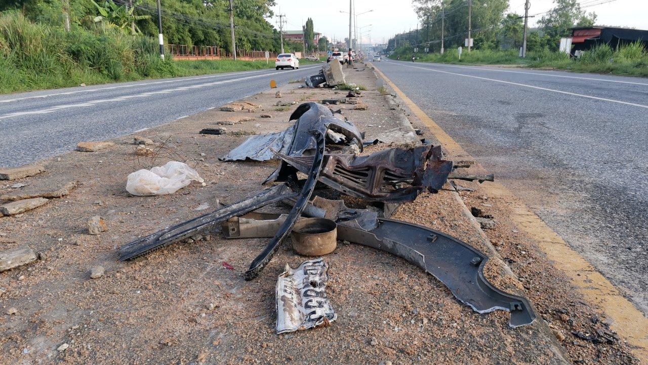 จากการสอบสวนทราบว่า รถยนต์กระบะมิตซูบิชิ ไทรทัน สีดำ 4 ประตู สีดำ ทะเบียน กธ 4853 อุบลราชธานี วิ่งมาทางแยกพวงมาลัยมุ่งหน้าเข้าอำเภอปลวกแดง แล้วเกิดข้ามเกาะกลางถนนชนเสาไฟส่องสว่างที่อยู่บนเกาะกลางถนนหักโค่นกระเด็นไป 10 เมตร จากนั้นก็ชนกับรถยนต์กระบะบรรทุกเหง้าสับปะรดที่นายสุรพงษ์ขับมาทางแยกมาบเตยมุ่งหน้าไปทางแยกพวงมาลัยเพื่อนำเหง้าสับปะรดไปส่งโรงงานที่อำเภอนิคมพัฒนา จังหวัดระยอง อย่างเต็มแรง ทำให้นายสุรพงษ์ถูกอัดติดภายใน