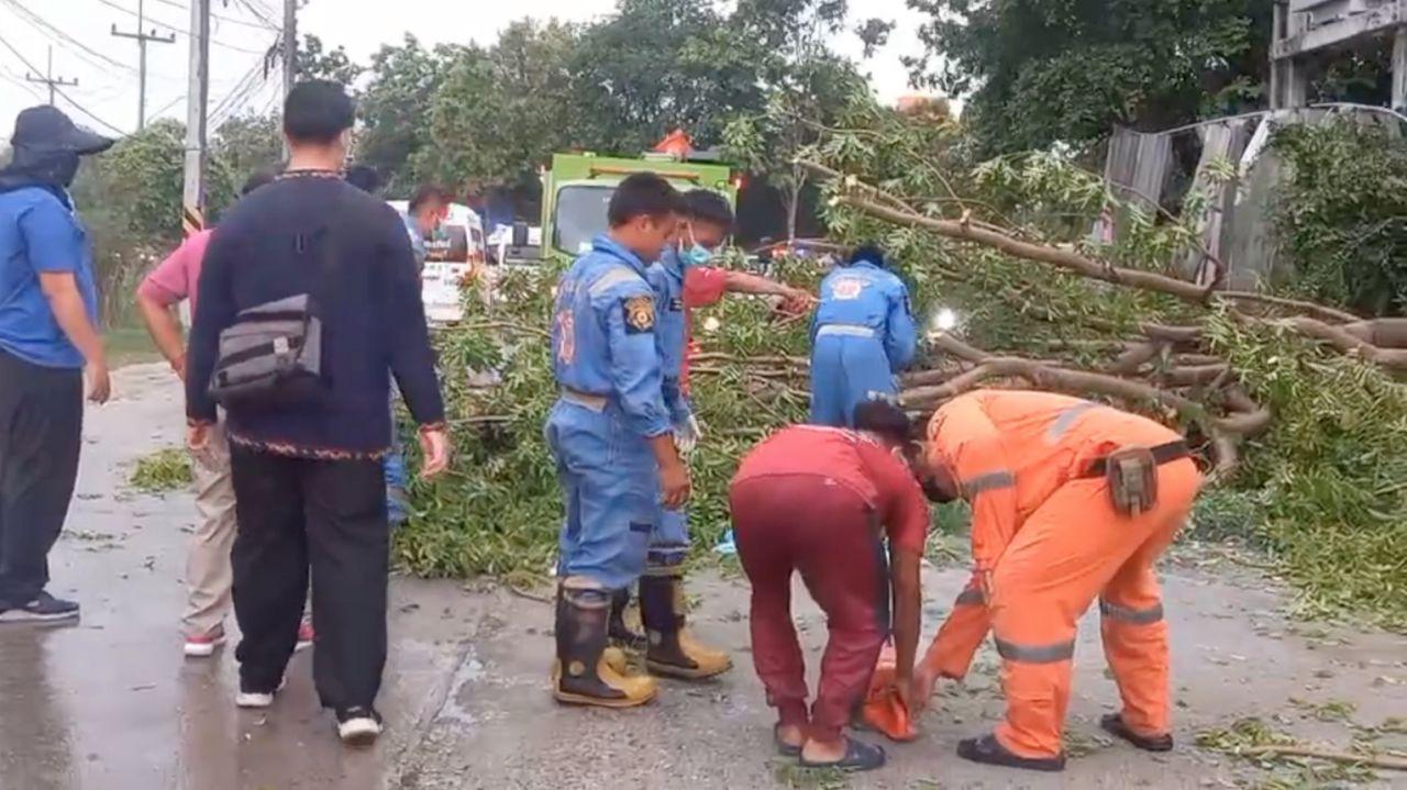 ขณะที่ นายวรวุธ นาคสุด พนักงานดับเพลิงเทศบาลเมืองแสนสุข กล่าวว่า ได้ รับแจ้งจากกู้ภัยมูลนิธิธรรมรัศมีมณีรัตน์ว่ามีต้นไม้ล้มทับคนจึงนำอุปกรณ์มาช่วยเหลือพบว่าผู้ชายนั้นกระเด็นออกมาข้างนอกก็ยังอาการสาหัสแต่ผู้หญิงโดนต้นไม้ทับอยู่จึงช่วยตัดต้นไม้และนำร่างทั้ง 2 ออกมาปฐมพยาบาลเบื้องต้น โดยฝ่ายกู้ภัยมังกรก็ช่วยเหลือนำคนเจ็บส่งโรงพยาบาล และทางทีมงานของตนก็ช่วยเหลือตัดต้นไม้ เพื่อเอาออกจากถนน ช่วงนี้พายุลมฝนแรงขับขี่รถด้วยความระมัดระวัง เนื่องจากพายุลมแรงไม่มีใครอยากให้มันเกิด แต่เมื่อเรื่องนี้มันเป็นอุบัติเหตุก็ต้องระวังเพิ่มขึ้นอีกมากหน่อย.
