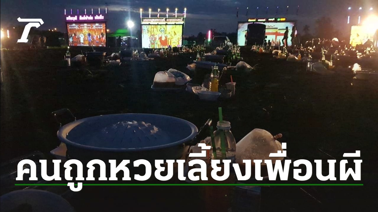 กลุ่มผู้โชคดีกว่า 100 คนร่วมจัดเลี้ยงหมูกระทะ 100 เตา และฉายหนังจำนวน 5 จอให้ผีดู ที่สุสานซำเต็กไท้ ชลบุรี หลังทุกคนโชคดีถูกหวยงวดที่แล้วได้เงินรวมกว่า 10 ล้านบาท แถมมีคนได้เลขเด็ดอีกด้วย