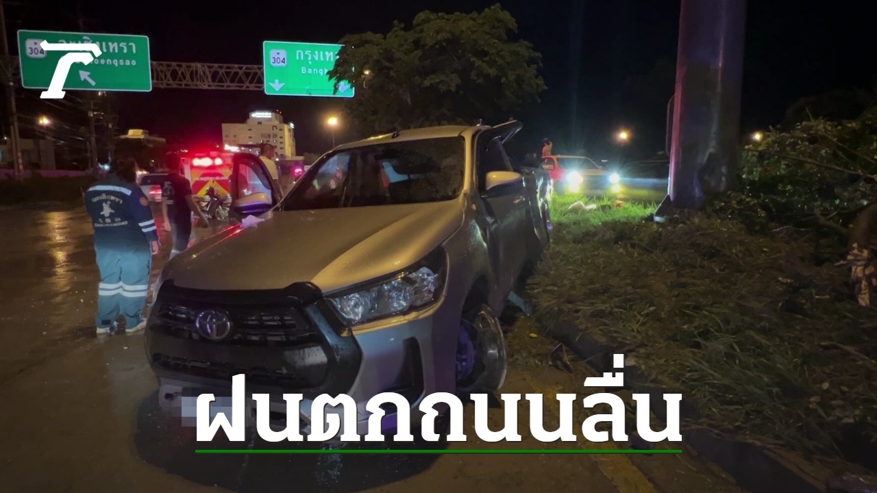 2 ครอบครัว 7 ชีวิต ขับกระบะไปพักผ่อนบางแสน ขากลับ กทม.ฝนตกตลอดทาง ลื่นเสียหลักปีนฟุตปาธ พุ่งชนต้นไม้-ตีลังกาฟาดเสาไฟฟ้า สลด 1 ครอบครัวสูญเสีย "แม่" เสียชีวิตคารถ ส่วน "พ่อ-ลูกน้อยวัย 9 เดือน" บาดเจ็บ