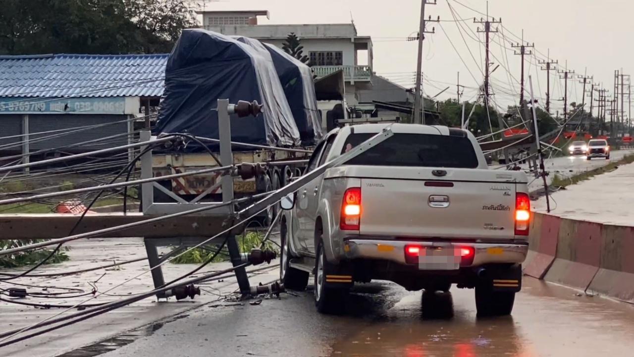 "ฉะเชิงเทรา" พายุฝนถล่มหนัก "อ.บางคล้า" อ่วม เสาไฟล้มโค่นระนาว ระยะทางยาวกว่า 1 กม. ส่งผลให้ ถ.304 เป็นอัมพาต-ทำรถติดยาว ส่วนชาวบ้านตกอยู่ในความมืด จนท.รุดให้การช่วยเหลือ