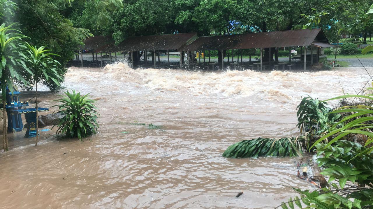จากสอบถามจากชาวบ้านได้เล่าเมื่อคืนมีฝนตก สะสมบนเขาใหญ่ จนช่วงประมาณ ตี 5 กว่าๆ มี ระดับน้ำเริ่มสูงขึ้นและมีสีแดงขุ่น ได้ไหลเข้าท่วมบ้านเรือนและตามรีสอร์ตต่างๆ ล่าสุดน้ำในคลองมะเดื่อและวังตะไคร้น้ำได้ลดลงบางแล้ว แต่ที่เจ้าหน้าที่ที่ดูแลรับผิดชอบ ก็ยังจัดกำลังเฝ้าระวังสถานการณ์ระดับน้ำทุกจุดและออกช่วยเหลือประชาชนที่ได้รับความเดือดร้อนตามบ้านเรือนและรีสอร์ตต่างๆ อยู่ หากมีฝนตกมาเพิ่มอาจเกิดน้ำป่าไหลหลากอีกจะได้ช่วยเหลือประชาชนได้ทัน