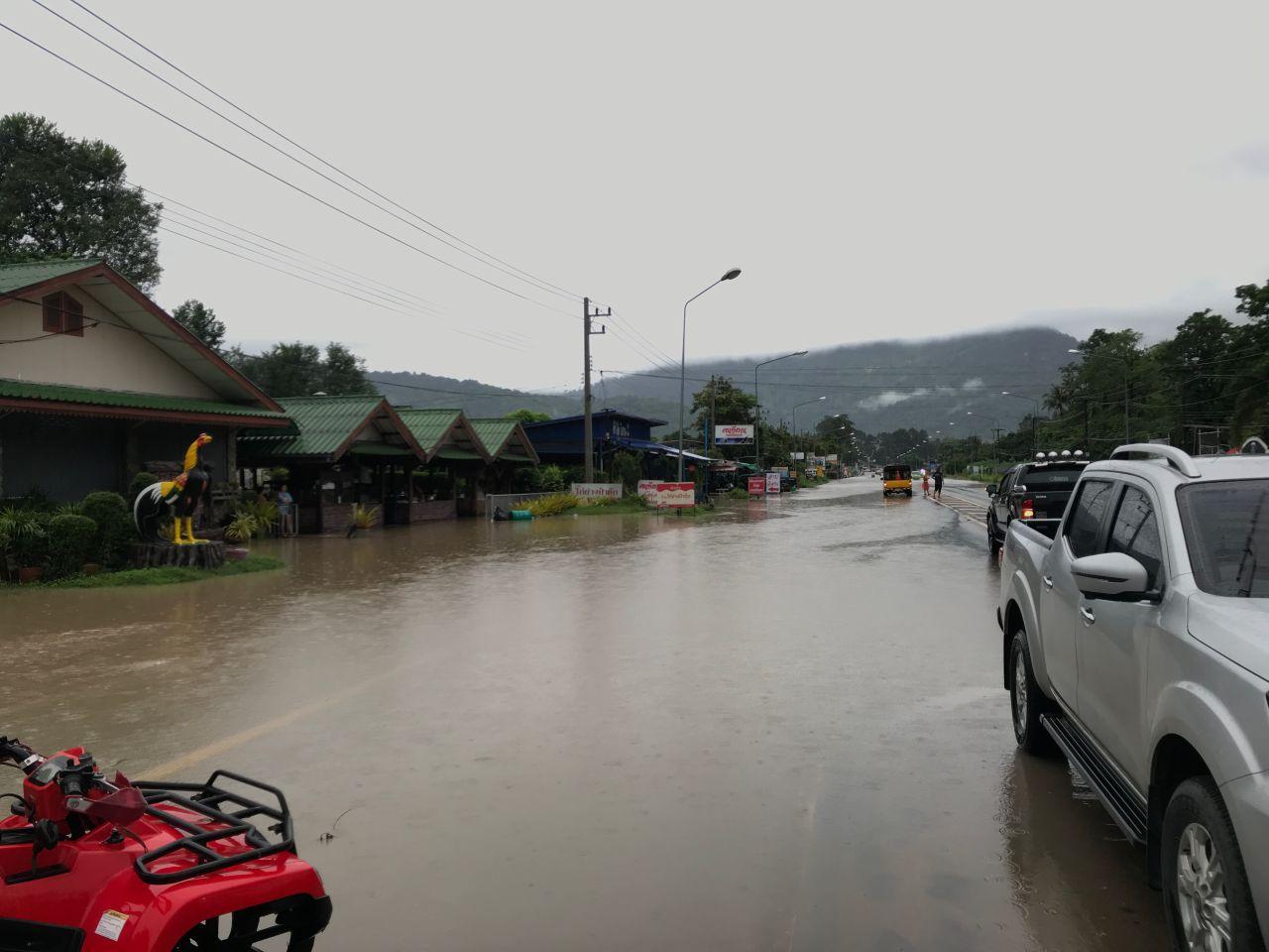 ขณะที่ นางสมปอง เสนา นายกองค์การบริหารส่วนตำบลหินตั้ง ได้ลงพื้นที่ช่วยเหลือรีสอร์ตและนักท่องเที่ยวที่อยู่ในรีสอร์ต ให้อยู่ในความปลอดภัยหรือระดับน้ำเพิ่มสูงขึ้น เข้าท่วมพื้นที่รีสอร์ต แต่เพียงระยะเวลาเพียงไม่นาน ระดับน้ำก็ลดลงจนสู่สภาวะปกติ เหลือเพียงเศษดินโคลนที่น้ำได้พัดพามาหลงเหลืออยู่ตามพื้นในพื้นที่รีสอร์ต เช่นเดียวกับ อุทยานน้ำตกนางรอง เจ้าหน้าที่ได้ปิดประตูทางเข้า ไม่อนุญาตให้บุคคลภายนอกเข้าในขณะนี้ เนื่องจากป้องกันไม่ให้เกิดอันตรายแก่นักท่องเที่ยว หรือบุคคลที่ไม่เกี่ยวข้องเนื่องจากปริมาณน้ำที่ไหลลงมายังอยู่ในระดับอันตราย.