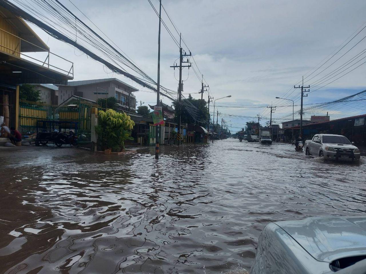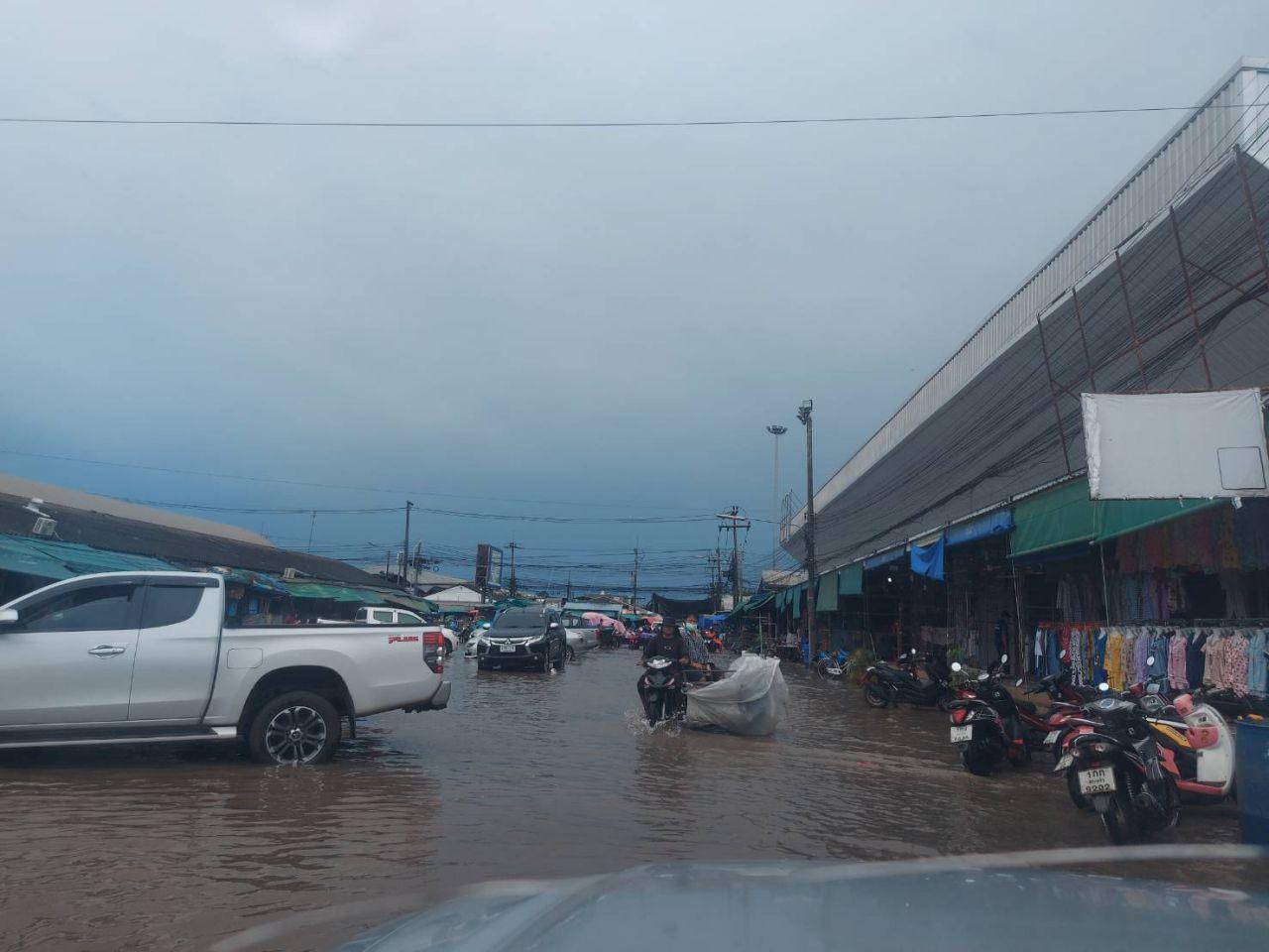 พายุฝนกระหน่ำช่วงบ่ายในพื้นที่ อ.อรัญประเทศ จ.สระแก้ว ทำให้เกิดน้ำหลากไหลท่วมขังบนถนนศรีเพ็ญ หน้าตลาดโรงเกลือ ก่อนไหลเข้าท่วมในตลาดเพราะท่อระบายน้ำอุดตัน ต้องใช้เวลา 2 ชม. น้ำจึงระบายออกหมด