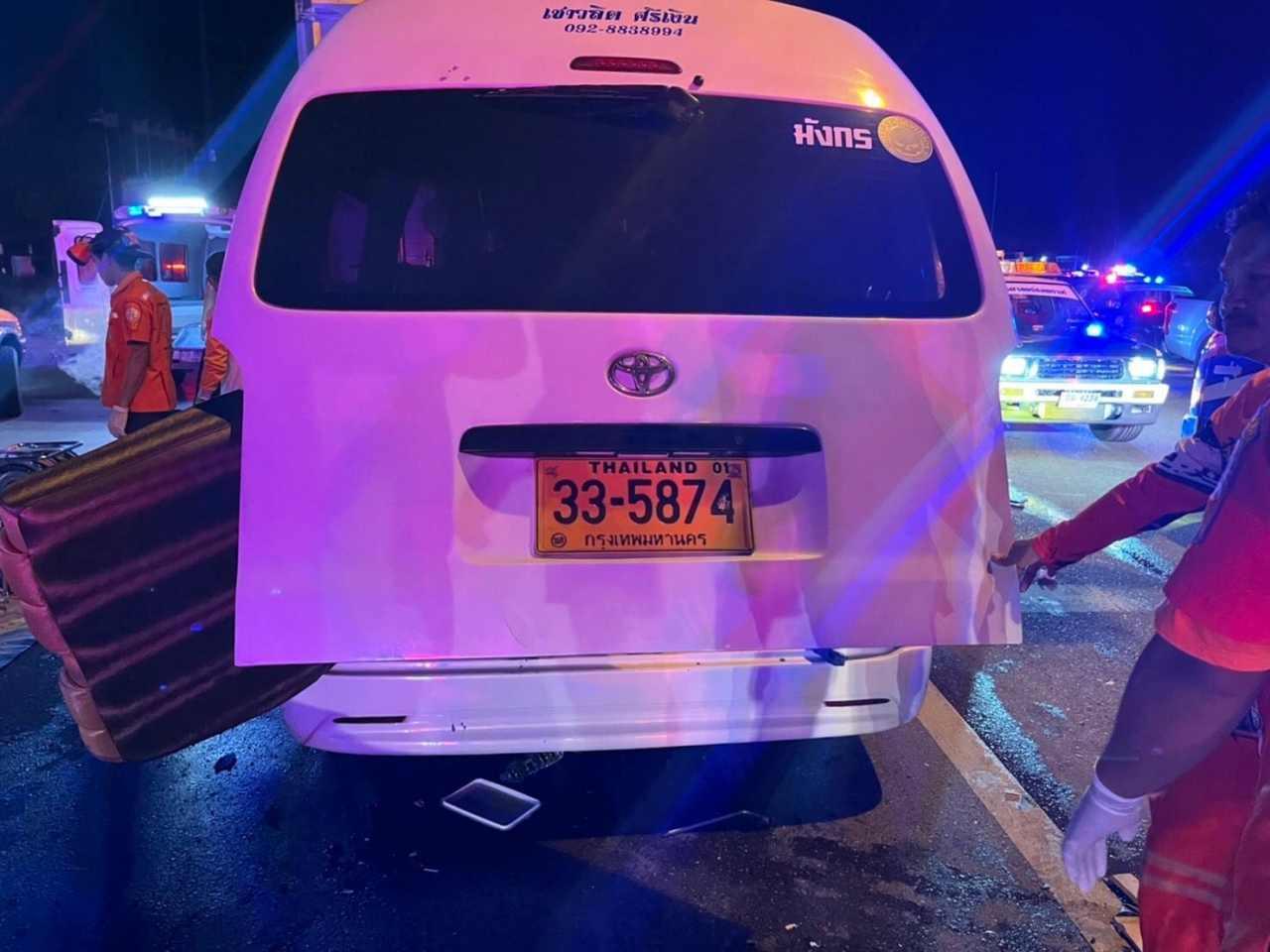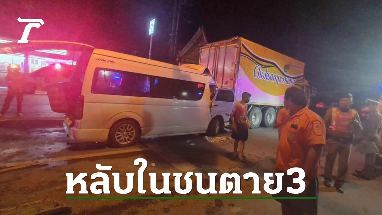 รถตู้ส่งชาวลาว 14 คน ไปต่อวีซ่าที่จันทบุรี พุ่งชนท้ายรถสิบล้อจอดติดไฟแดงที่ อ.แกลง จ.ระยอง เสียชีวิตคาที่ 3 บาดเจ็บ 12 คาดคนขับหลับใน มีพยานเห็นพุ่งชนอย่างแรงโดยไม่ได้เบรก
