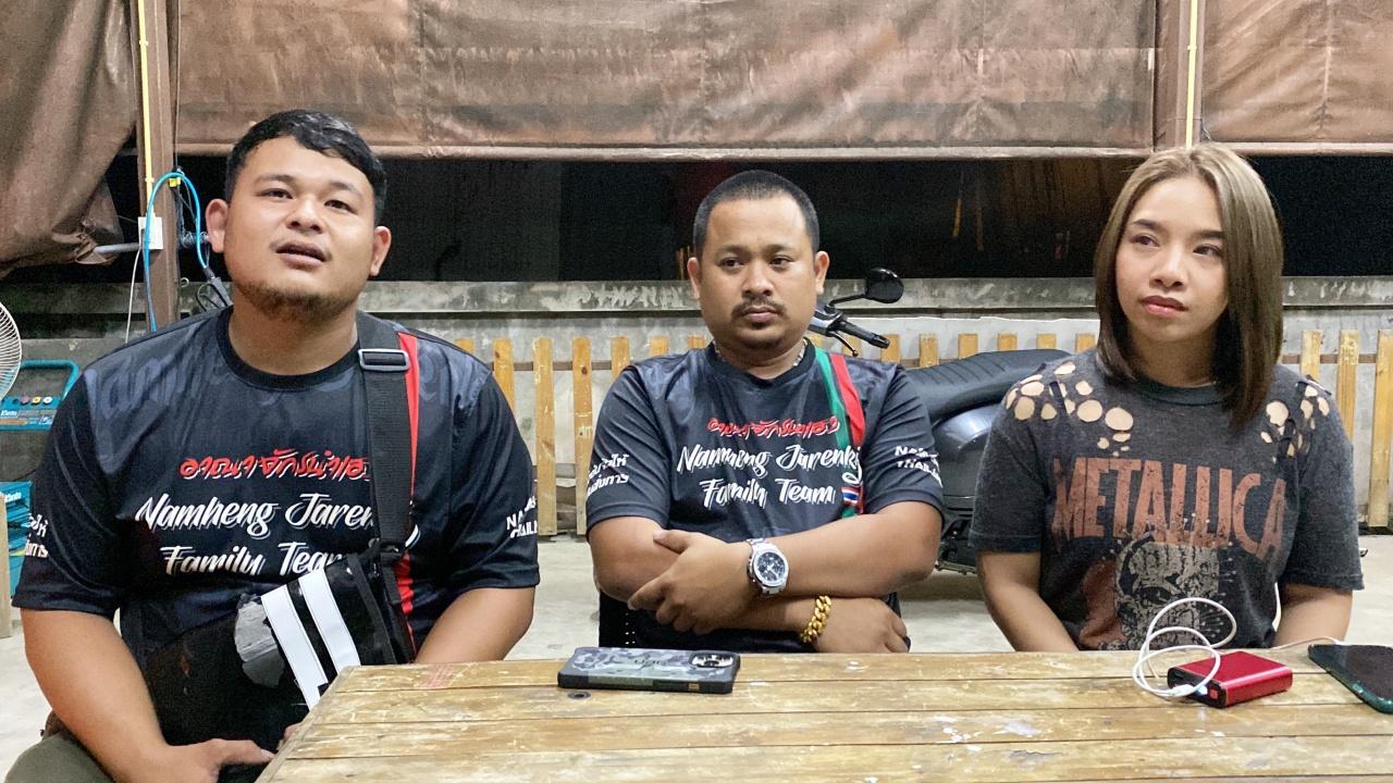 นายจักรกฤษณ์ อ้นศรีสวัสดิ์ อายุ 34 ปี เถ้าแก่ และนางสาวภาวดี บูรณะกิติ อายุ 28 ปี ภรรยาเถ้าแก่ ผู้อยู่ในเหตุการณ์ ที่ อู่บริการน้ำจืด รถน้ำนายต้น ต.หนองปรือ อ.บางละมุง จ.ชลบุรี