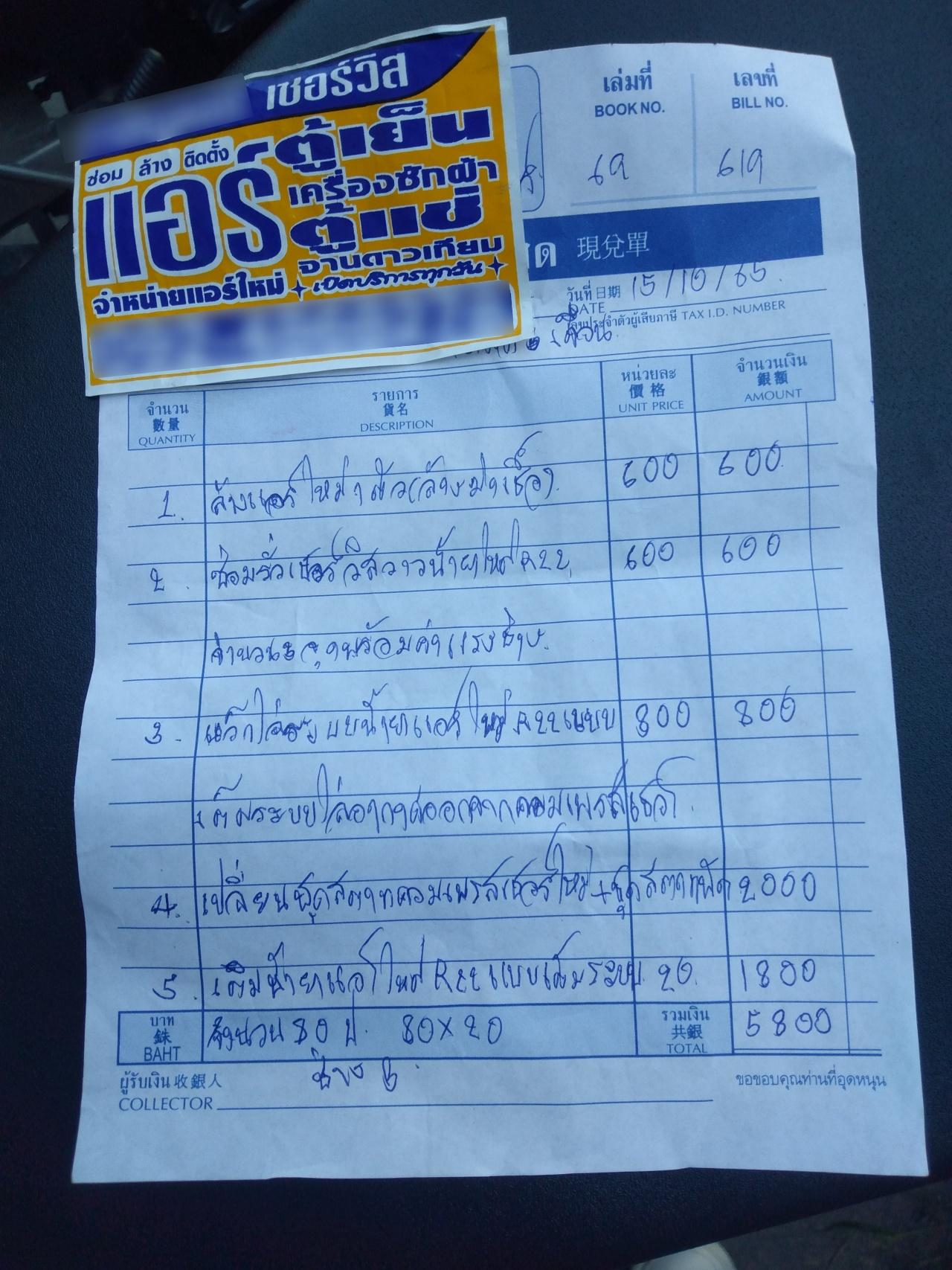 โดย นายรัตนพล เจ้าของบ้าน ได้เปิดเผยว่า เมื่อวันที่ 15 ต.ค.ที่ผ่านมา ตนเองได้ติดต่อช่างแอร์ มาทำการล้างแอร์ที่บ้าน โดยได้เบอร์ติดต่อมาจากแผ่นป้ายที่ติดตรงเสาไฟ หลังจากที่นัดเวลาช่างเรียบร้อยแล้ว ต่อมาตนเองได้เดินทางไปทำงาน โดยให้น้องชายเป็นคนดูแล จนกระทั่งเลิกงานกลับมาช่วงเย็น เมื่อเห็นบิลค่าล้างแอร์ก็ถึงกับช็อก กับราคารวมทั้งหมด 5,800 บาท เมื่อสอบถามน้องชาย ได้คำตอบว่าช่างไม่ได้แจ้งอะไรเลย โดยเข้าใจว่าตกลงกับตนเองเรียบร้อยแล้ว หลังได้รับบิลจึงโอนเงินจ่ายไปเป็นจำนวน 5,800 บาท