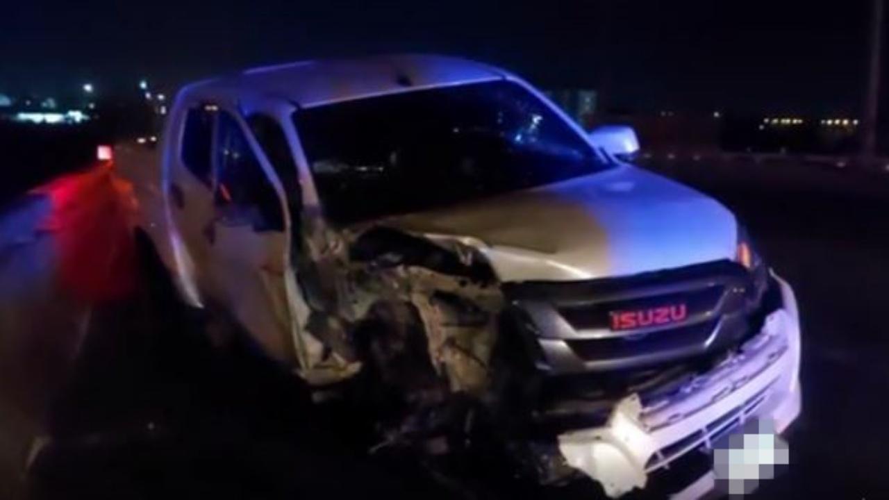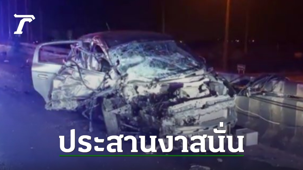 เก๋งประสานงากระบะ กลางสะพานข้ามมอเตอร์เวย์ สลดคนขับเก๋งตายคาซาก ส่วนกระบะบาดเจ็บ 2 ราย ด้านคนขับกระบะเผยเก๋งย้อนศรขับตีคู่ไล่กันมา