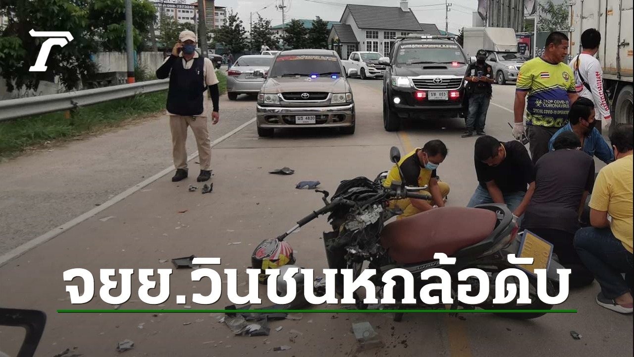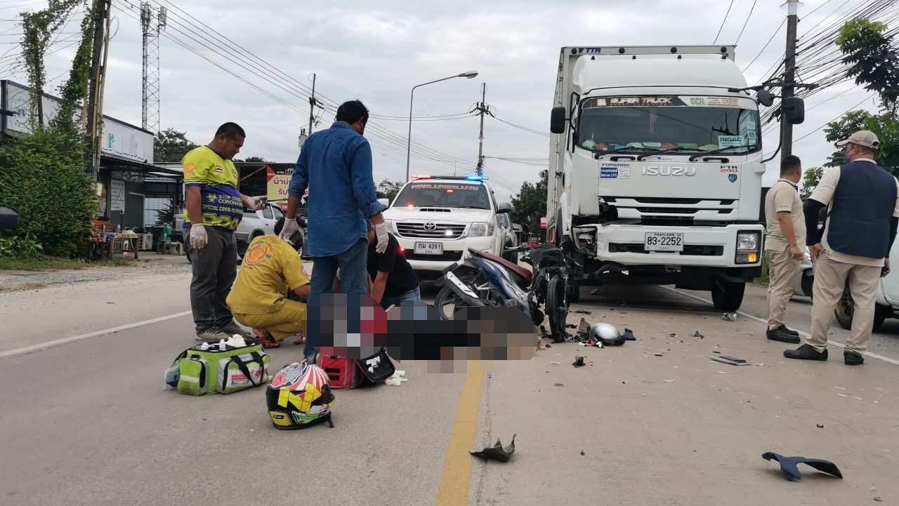 นายธนาวุฒิ สุริยวงค์ อายุ 45 ปี ชาวบ้าน หมู่ 4 ตำบลมาบยางพร อำเภอปลวกแดง จังหวัดระยอง กล่าวว่า ขับรถหกล้อตู้ใหญ่คันดังกล่าวไปส่งของที่โรงงานมากำลังจะกลับบ้าน โดยวิ่งมาจากซอยสุพรรณมุ่งหน้าออกไปยังถนนสาย 3013 พอใกล้ถึงทางโค้งก็เห็น รถ จยย.วิ่งสวนมาแล้วหลุดโค้งเข้ามาชนรถตนอย่างจังดังกล่าว