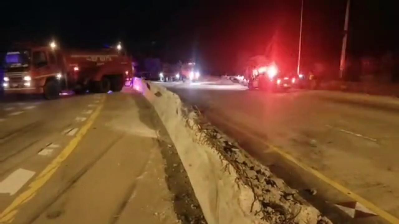 จากการสอบสวนของเจ้าหน้าที่ตำรวจ เบื้องต้น ทราบว่า ขณะที่รถบรรทุกตู้คอนเทนเนอร์และรถบรรทุกน้ำมันกำลังมุ่งหน้า จ.ขอนแก่น และนครราชสีมา ถึงช่วงทางโค้งศาลปู่โทนรถบรรทุกข้าวเปลือกที่มีนายลพ ทองสาย ขับลงมาจากนครราชสีมา เกิดเสียหลักหลุดโค้งพุ่งข้ามเกาะกลางถนนมาชนกับรถบรรทุกตู้คอนเทนเนอร์อย่างจังจนพลิกหลายท้อง ส่งผลให้นายสุริยา คนขับ ตู้คอนเทนเนอร์เสียชีวิต นายลพได้รับบาดเจ็บสาหัส ส่วนรถบรรทุกน้ำมันที่มีนายพงษ์ศักดิ์ สรรพเค้า อายุ 31 ปี คนขับที่ไม่ได้รับบาดเจ็บเปิดเผยว่า กำลังจะนำน้ำมันกว่าสองหมื่นลิตรไปส่งที่ ขอนแก่น ช่วงเกิดเหตุเห็นรถบรรทุกข้าวเปลือกหลุดโค้งข้ามมาชนกับรถตู้คอนเทนเนอร์ ก่อนที่รถตู้คอนเทนเนอร์จะเสียหลักเหวี่ยงมาโดนรถตน แต่ยังโชคดีที่ไม่ได้รับบาดเจ็บ