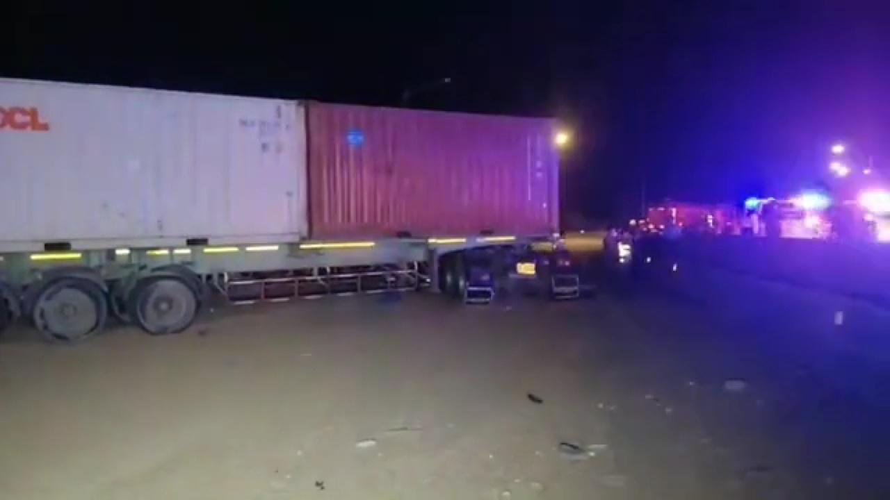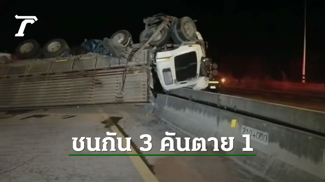 เกิดอุบัติเหตุรถบรรทุก 3 คัน ชนกันบนถนนหน้าศาลปู่โทน อ.นาดี จ.ปราจีนบุรี เมื่อกลางดึกที่ผ่านมา ทำให้มีผู้เสียชีวิต 1 ศพ บาดเจ็บสาหัสอีก 1 ราย