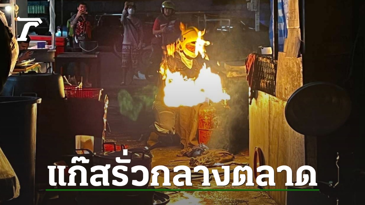 แตกตื่นทั้งตลาดสดที่บางละมุง ชลบุรี ถังแก๊สรั่ว เกิดไฟลุก คลอกพ่อค้าขนมครกและร้านข้างเคียง กับคนที่เดินผ่าน บาดเจ็บ 3 สาเหตุเกิดจากใช้สายยางผิดประเภท