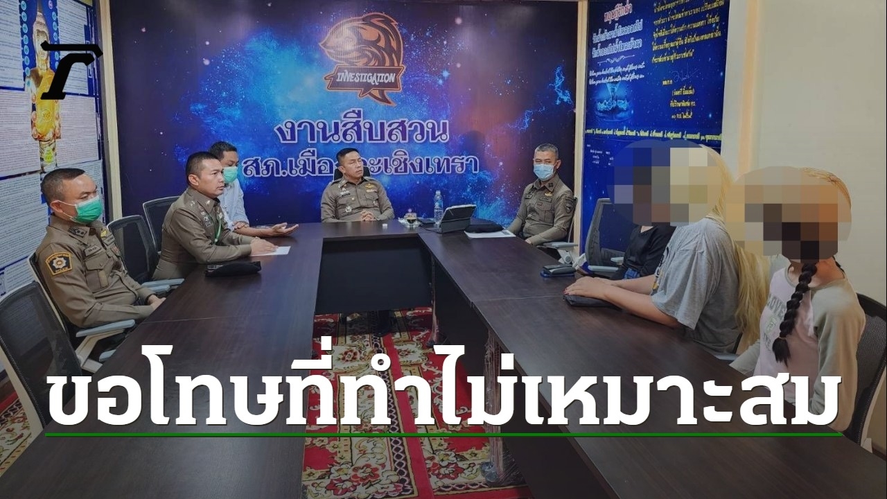 3 สาวประเภทสองแต่งวาบหวิว พบ ตร.เมืองฉะเชิงเทรา รับทราบข้อกล่าวหา และไปกราบหลวงพ่อโสธรที่วัดแล้ว เผยร้านไม่มีส่วนเกี่ยวข้อง คิดคอนเทนต์เสนอเอง เสียใจทำไม่เหมาะสม กระทบจิตใจความรู้สึกชาวแปดริ้ว