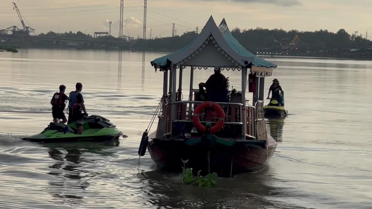 ต่อมา เวลา 17.00 น. เจ้าหน้าที่กู้ภัยฉะเชิงเทรา ได้นำเรือเจ็ตสกีของประชาชนที่อยู่ในบริเวณดังกล่าว ออกไปกลางแม่น้ำเพื่อให้ความช่วยเหลือ แต่ไม่สำเร็จเพราะหญิงคนดังกล่าวก็ยังไม่ยอมขึ้นมาจากน้ำ จึงทำให้เจ้าหน้าที่ต้องเข้าไปดึงแขน แล้วค่อยๆ ขับเจ็ตสกีพาตัวกลับเข้าฝั่ง