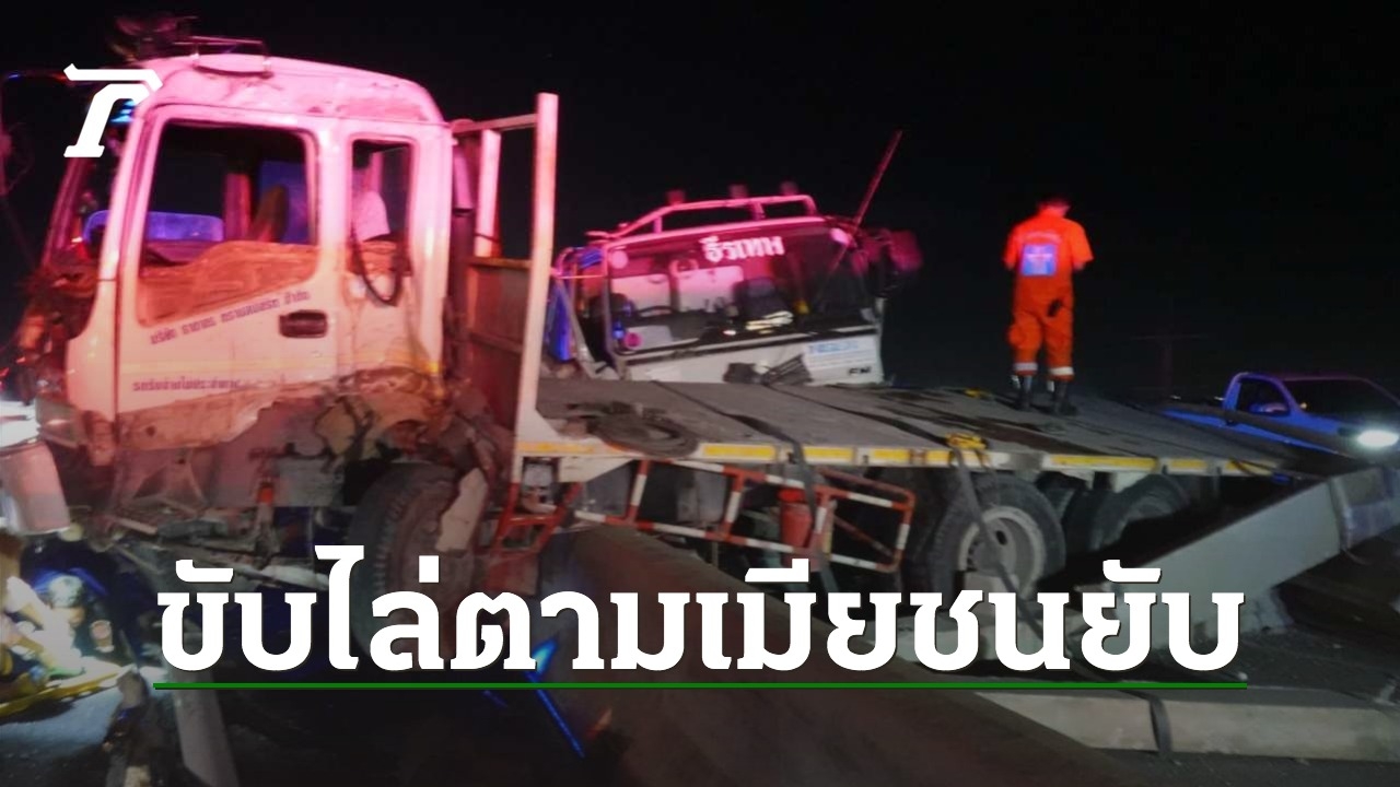 มือที่ 3 จุ้นรักพาวุ่น เมื่อชายวัย 44 กับลูกชาย 18 ปี ขับสิบล้อไล่ตามรถสิบล้ออีกคัน ที่เมียกับหนุ่มวัย 39 นั่งมาด้วยกัน ไล่กวดบนถนนหวังเคลียร์ใจ จนขับหนีขึ้นทางด่วนแล้วเกิดชนกันมีเจ็บ 3 ราย