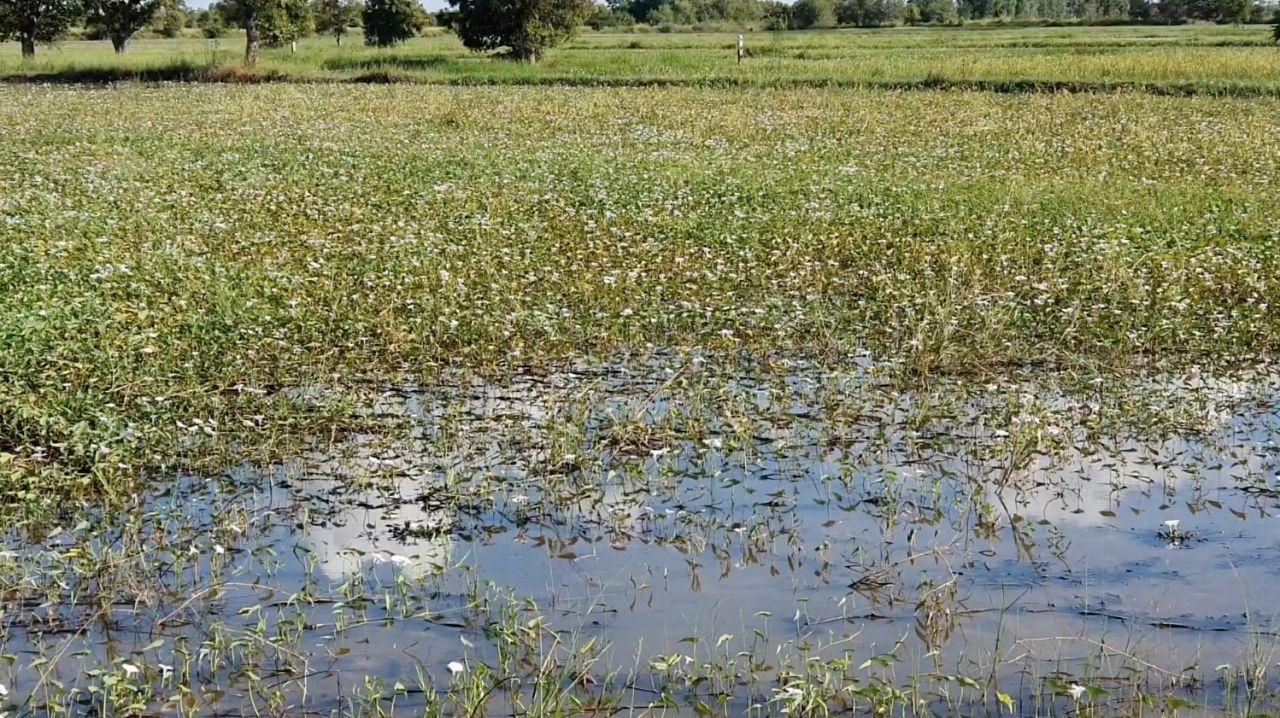 นาข้าวกลายเป็นทุ่งผักบุ้งออกดอกสวยงาม แต่ชาวนาโคราชที่ อ.โนนแดง นั่งน้ำตาไหล เพราะปลูกข้าวไม่ได้หลังน้ำท่วมติดต่อหลายปี จนเงินที่กู้มาทำทุนปลูกข้าว กลายเป็นเป็นหนี้ ธ.ก.ส.ก้อนโตวอนรัฐช่วยเหลือ