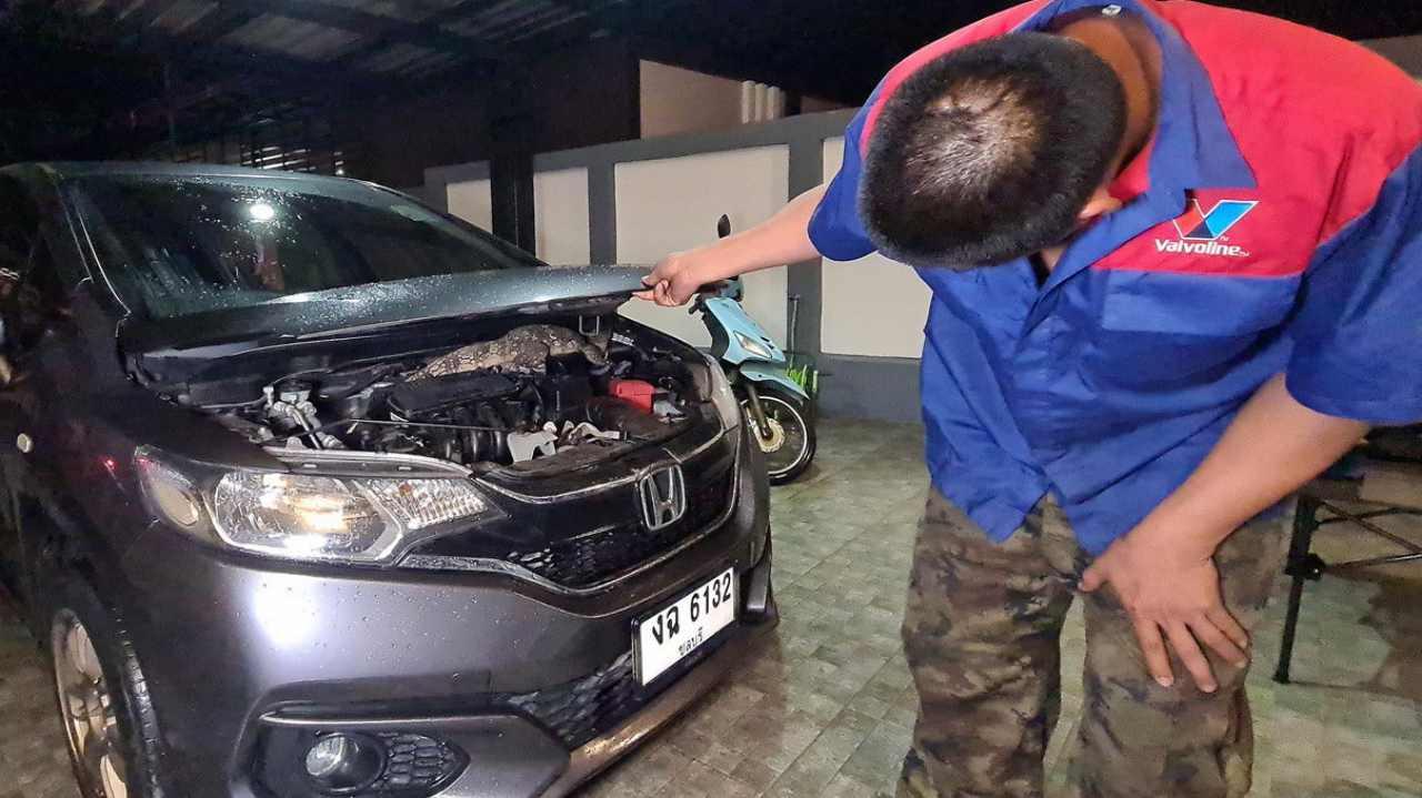 ที่เกิดเหตุพบ รถเก๋งฮอนด้าแจ๊ซ สีเทาดำ ทะเบียน งฉ-6132 ชลบุรี จอดอยู่บริเวณลานจอดรถในรั้วบ้าน โดยมีเจ้าของบ้านยืนเฝ้าไม่ยอมห่าง และอยู่ในอาการตกใจ เบื้องต้นกู้ภัยได้เปิดฝากระโปรงรถ พบตัวเงินตัวทองความยาวเกือบ 2 เมตร กำลังนอนแลบลิ้นอย่างสบายใจอยู่บนห้องเครื่อง จึงได้ใช้อุปกรณ์จับอสรพิษชนิดห่วงเชือก เข้าคล้องที่บริเวณลำคอ ก่อนกระตุกเงื่อน แต่ตัวเงินตัวทองได้ดิ้นจนหลุด วิ่งหนีเข้าไปในบ้านใกล้เคียง สร้างความแตกตื่นให้กับชาวบ้านอย่างมาก กู้ภัยได้วิ่งไล่ตามจนสามารถจับตัวไว้ได้ในที่สุด