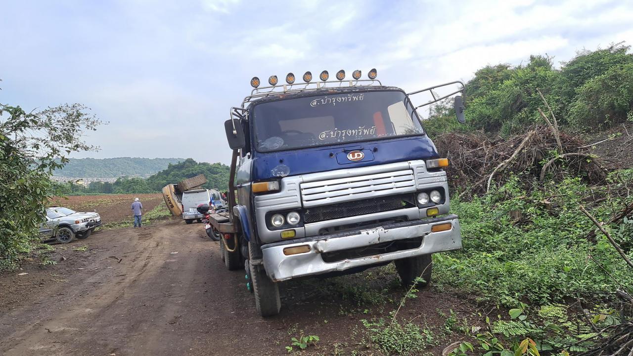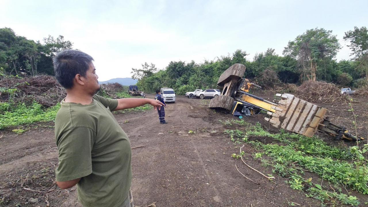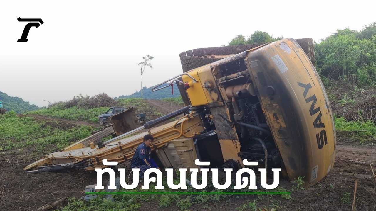 สลด หนุ่มคนงานชะตาขาด ขับรถแบ็กโฮลื่นไถลตกจากเทรลเลอร์ ระหว่างจะนำมาปรับพื้นที่ไร่มัน ทับร่างตัวเองดับสยอง แม้จะพยายามโดดหนีแต่ไม่ทัน