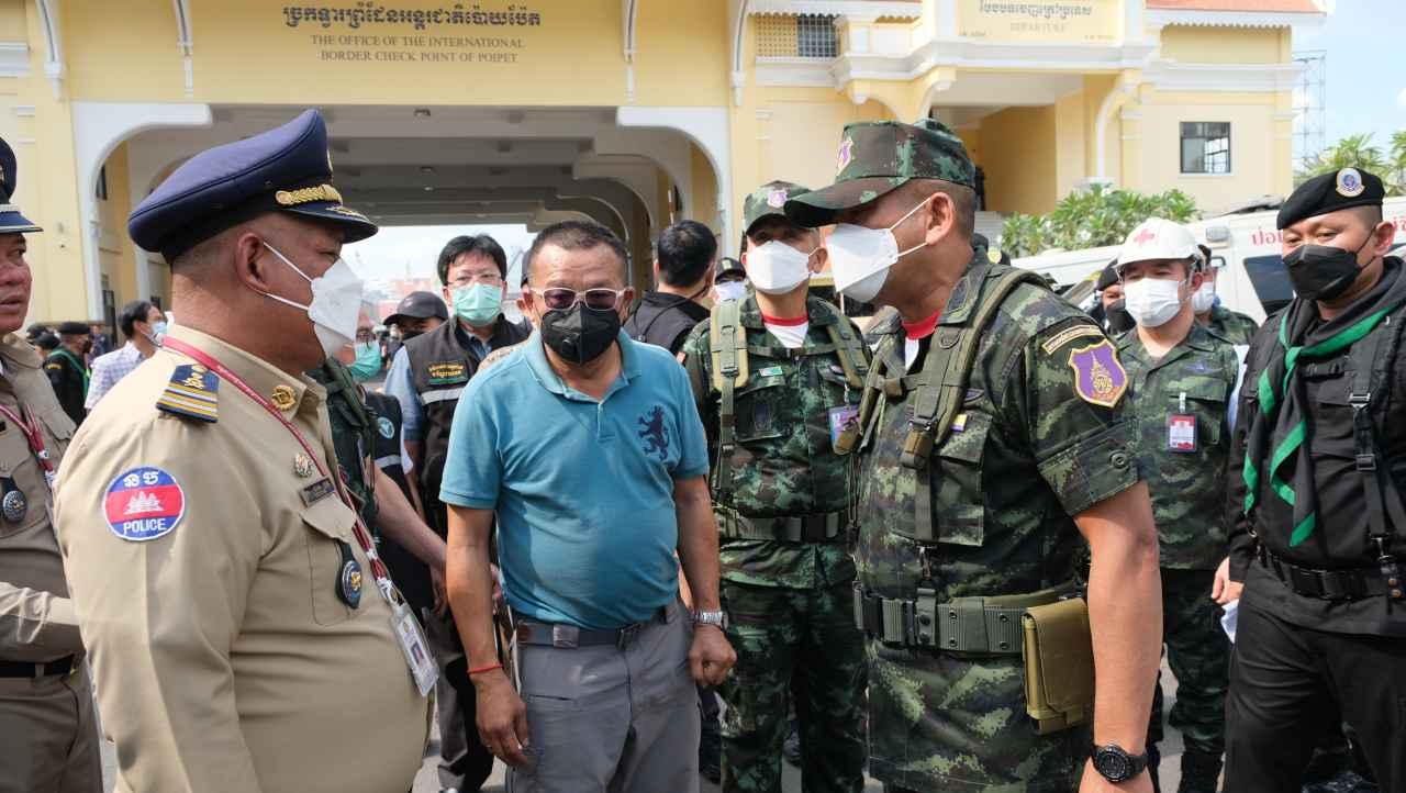 เมื่อเวลา 14.00 น. วันที่ 29 ธ.ค. 65 พล.ต.สราวุธ ไชยสิทธิ์ ผู้บัญชาการกองกำลังบูรพา ได้บินด่วนมาที่หน้าด่าน ตม.อรัญประเทศ จ.สระแก้ว เพื่อมาดูสถานการณ์การช่วยเหลือคนไทยเหตุเพลิงไหม้ที่บ่อนกาสิโนฝั่งปอยเปต ประเทศกัมพูชา ซึ่งอยู่ห่างด่าน ตม.อรัญประเทศ จ.สระแก้ว ประมาณ 200 เมตร โดยมี พ.อ.อนุพงศ์ มูลบรรจบ ผบ.ชค.ทพ.13, พ.ต.อ.รุ่ง ทองมนต์ ผกก.ตม.จว.สระแก้ว, พ.ต.อ.พัฒนชัย ภมรพิบูลย์ ผกก.สภ.คลองลึก, พ.ต.ท.จิรพัฒน์ เขียวศิริ สว.ส.ทท.สระแก้ว มาร่วมให้การต้อนรับ