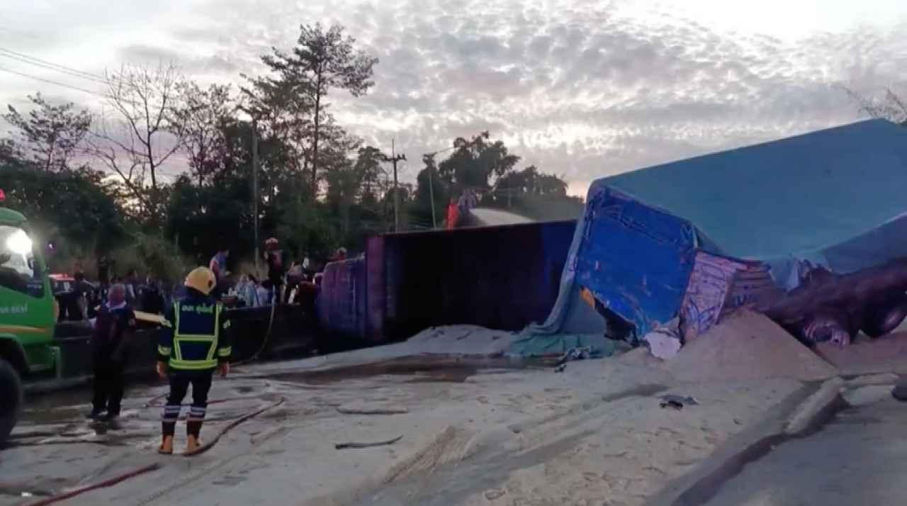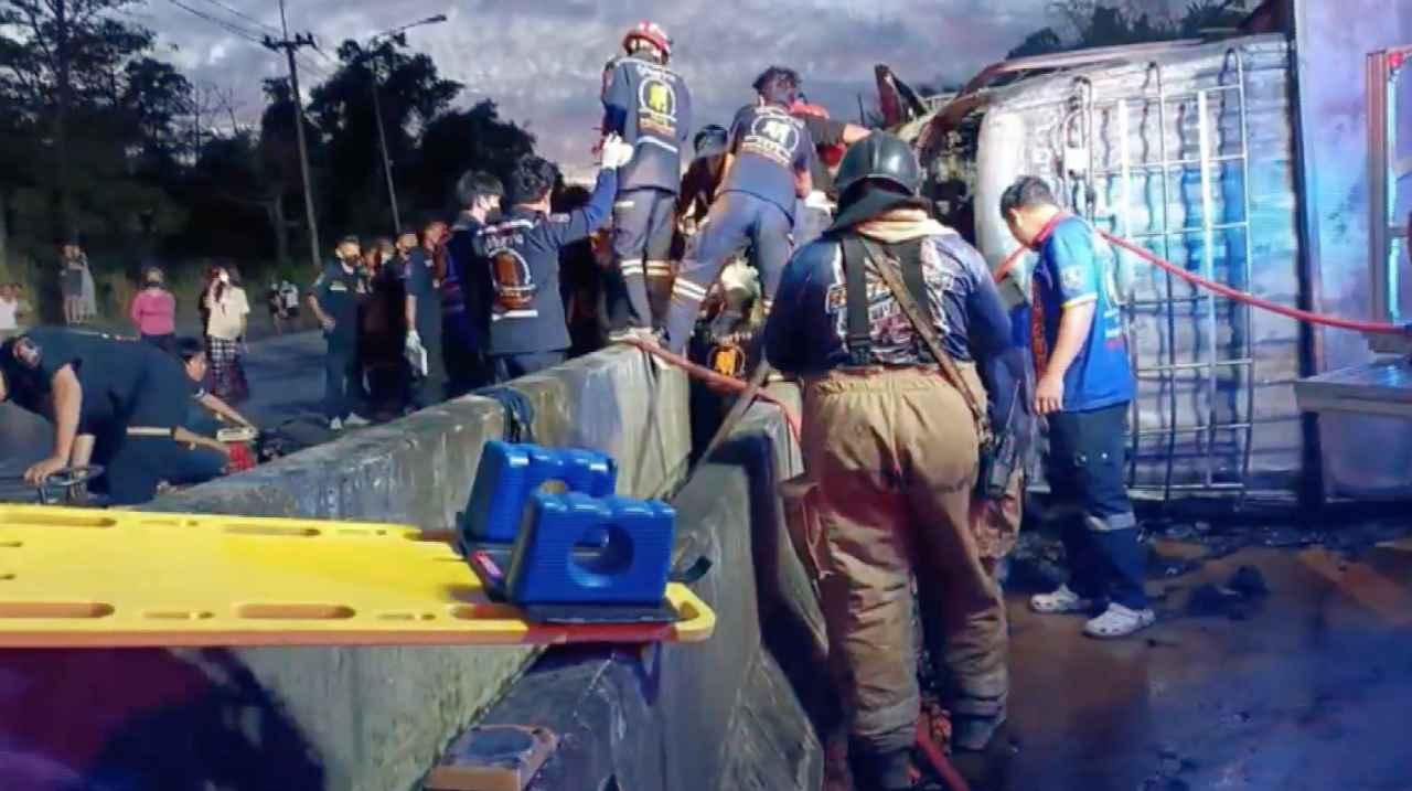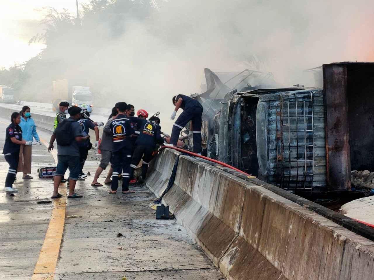 เมื่อเวลา 17.00 น.วันที่ 5 ม.ค.66 พนักงานสอบสวน สภ.วังขอนแดง อ.นาดี จ.ปราจีนบุรี ได้รับแจ้งมีเหตุรถบรรทุกลงเขาโทนชนดะ 4 คันรวด บริเวณถนนสาย 304 หลัก กม.ที่ 212 หมู่ 4 ต.บุพราหมณ์ อ.นาดี จ.ปราจีนบุรี มีไฟลุกไหม้รถบรรทุกอย่างรุนแรง ส่วนคนขับถูกไฟคลอกอยู่ภายในรถ และมีผู้ได้รับบาดเจ็บอีกหลายราย