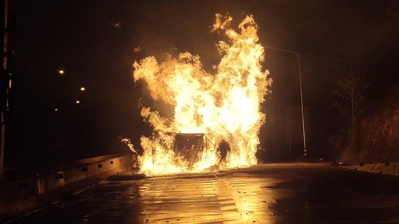 ล่าสุด ถังที่บรรจุสารเอทานอลของรถบรรทุกคันดังกล่าว ถูกเพลิงไหม้ละลายไปเกือบครึ่งถังแล้ว ส่วนสารเอทานอลที่อยู่ในถังเริ่มไหลนองพื้นถนน คาดว่าเจ้าหน้าที่ต้องใช้เวลาควบคุมเพลิง และเคลียร์พื้นที่ผิวถนนได้ในช่วงเช้าวันพรุ่งนี้ (25 ม.ค.)