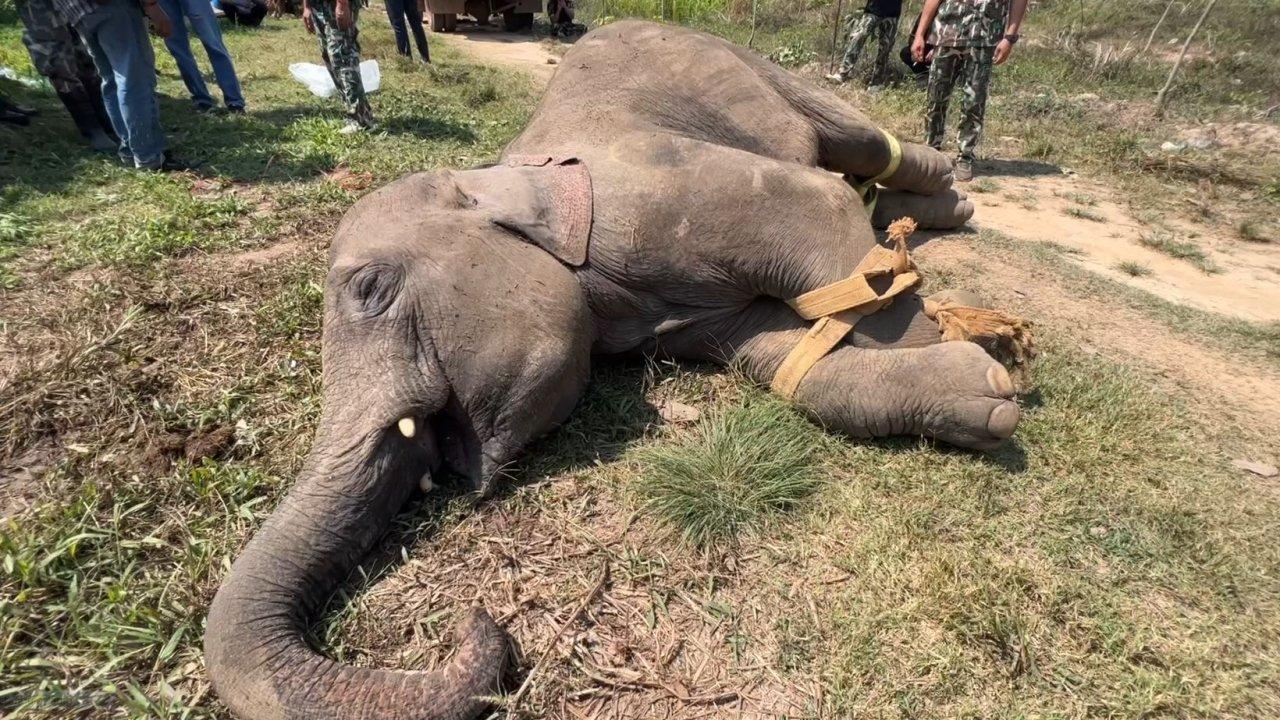 จากนั้นชาวบ้านจึงได้ประสานเจ้าหน้าที่เขตรักษาพันธุ์สัตว์ป่าเขาอ่างฤาไน ให้เข้าตรวจสอบ สุดท้ายลูกช้างตัวดังกล่าวทนไม่ไหวเสียชีวิตในเวลาต่อมา จากการตรวจสอบเบื้องต้นของทางเจ้าหน้าที่พบว่าช้างที่เสียชีวิตเป็นช้างเพศผู้อายุประมาณ 6 ปี บริเวณช่วงท้องมีลักษณะป่องผิดสังเกต มีเลือดออกตามผิวหนังบริเวณรูขุมขน และมีแผลถูกกระสุนปืนยิงบริเวณช่วงลำคอแต่เป็นบาดแผลที่ไม่ลึก และไม่ใช่บาดแผลที่ทำให้เสียชีวิต